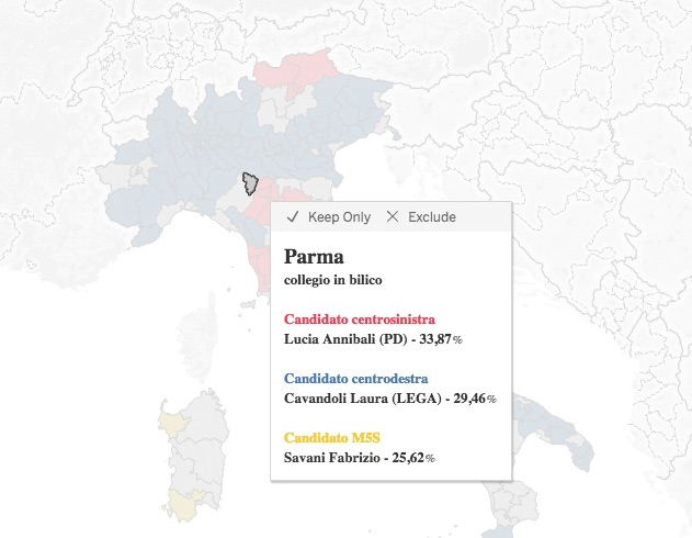 Per quanto riguarda i due collegi di Parma, essi sono classificati come “in bilico”, con Lucia Annibali (Pd) in vantaggio in città e Giovanni Tombolato (Lega) a Fidenza.