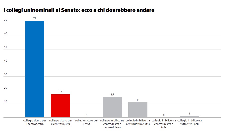 A livello nazionale, il centrodestra è in grande vantaggio nei collegi uninominali.