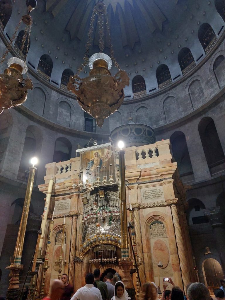 Al centro della basilica erge l’edicola che custodisce la tomba vuota di Gesù, e si porta dietro una storia di duemila anni, dalla venerazione dei primi cristiani, alla conversione in tempio pagano, ai fasti cristiani di Costantino, alle dominazioni islamiche, alle riconquiste crociate, agli scontri di religione, fino al restauro del 2017.