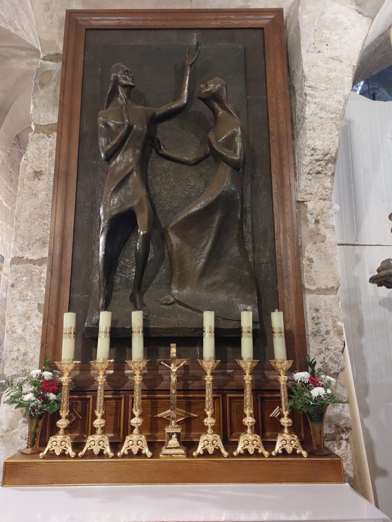 A destra c’è il punto in cui il Risorto apparve alla Maddalena. Incredibile, sono lì, davanti alla visione di “noli me tangere”. Tra loro due c’è l’intruso. (leggi anche: † Dialogo tra Maria Maddalena e Andrea Marsiletti sul lungolago di Tiberiade)