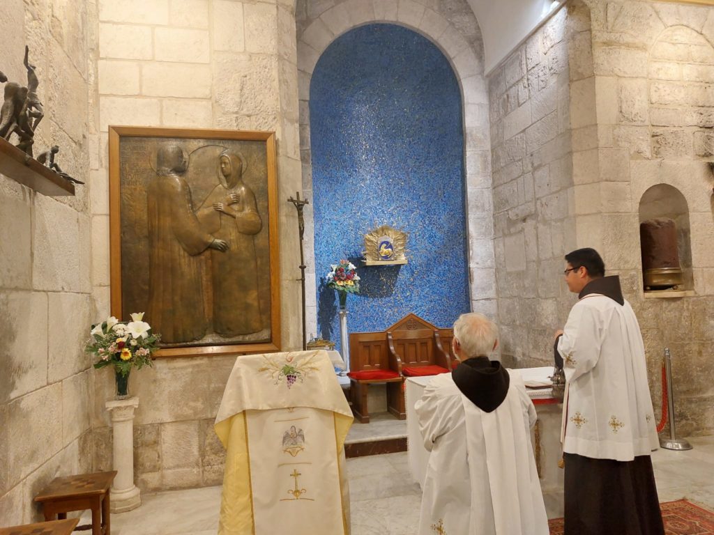 Ho la fortuna di assistere alla processione che dal 1400 ogni giorno alla stessa ora i frati francescani che vivono al Santo Sepolcro celebrano sostando in diversi punti della Basilica per commemorare i momenti della Passione del Signore. L’ufficio viene interamente recitato in lingua latina per manifestare che i luoghi Santi non sono patrimonio esclusivo della chiesa locale palestinese di lingua araba, e neppure della chiesa italiana (l’italiano è la lingua ufficiale della Custodia di Terra Santa francescana), ma sono patrimonio della Chiesa cattolica universale.
