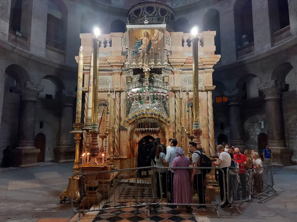 All’ingresso dell’edicola un frate francescano chiede ai pellegrini di rimanere dentro solo per un minuto, ricordando che è assolutamente vietato scattare fotografie della tomba di Gesù.
