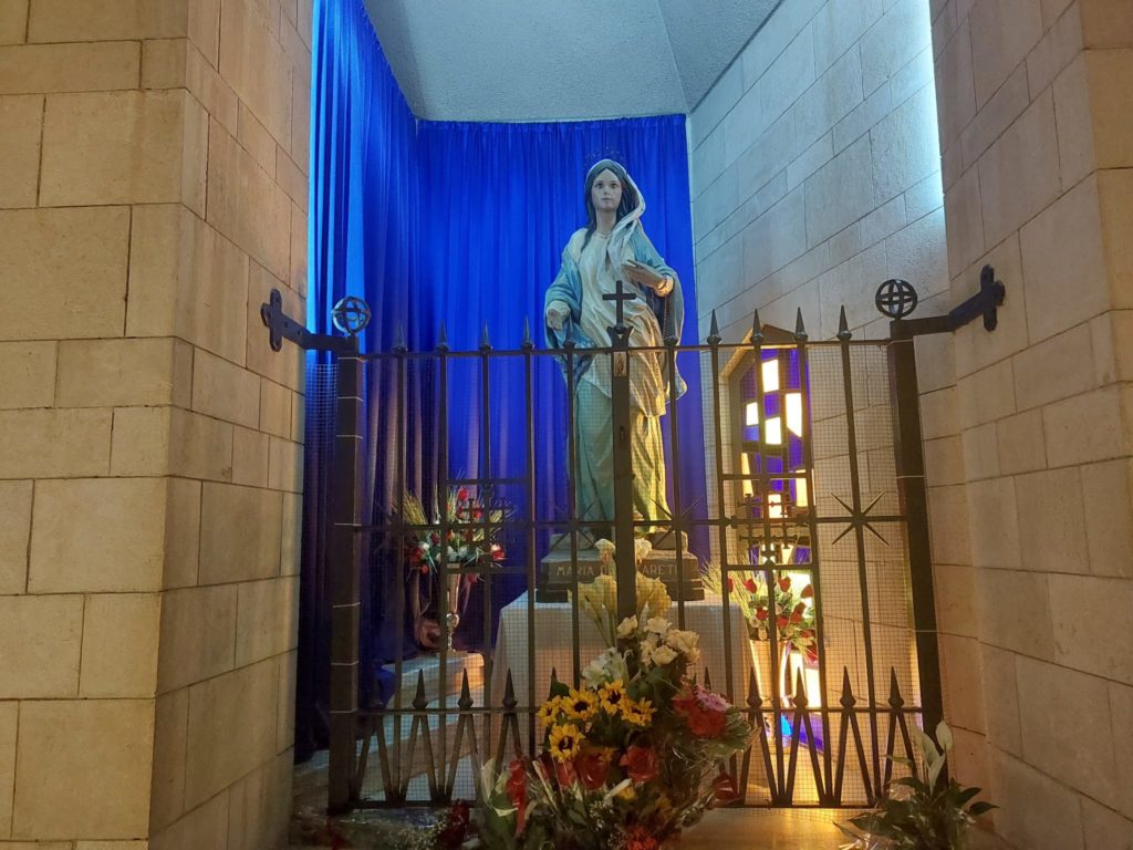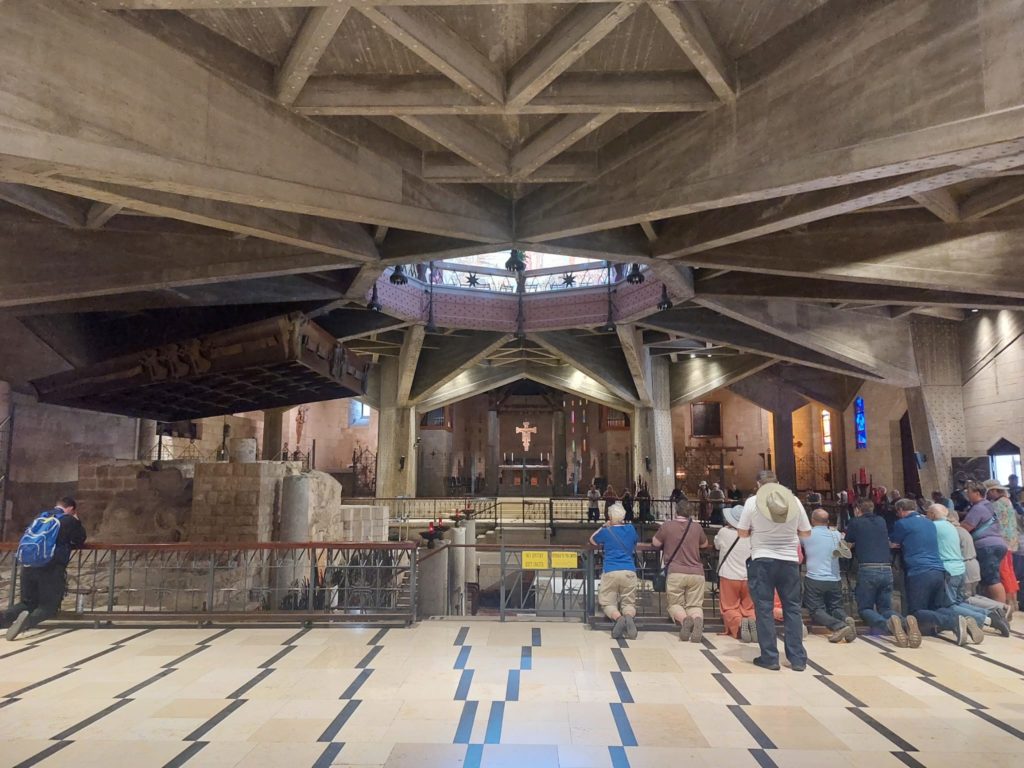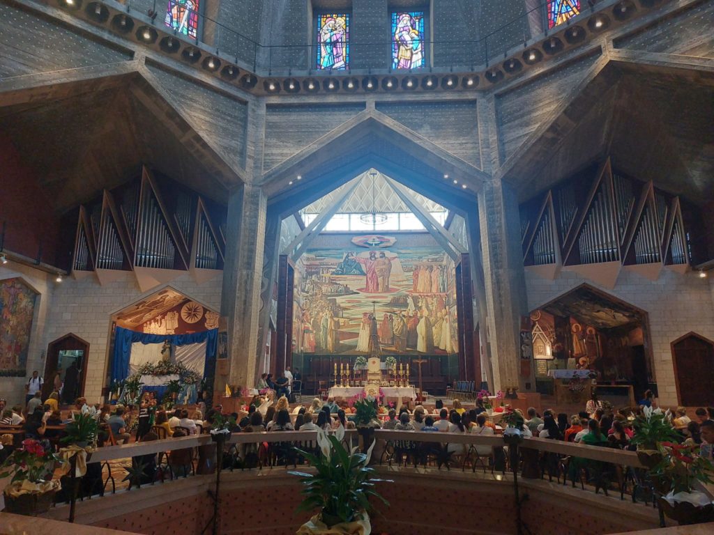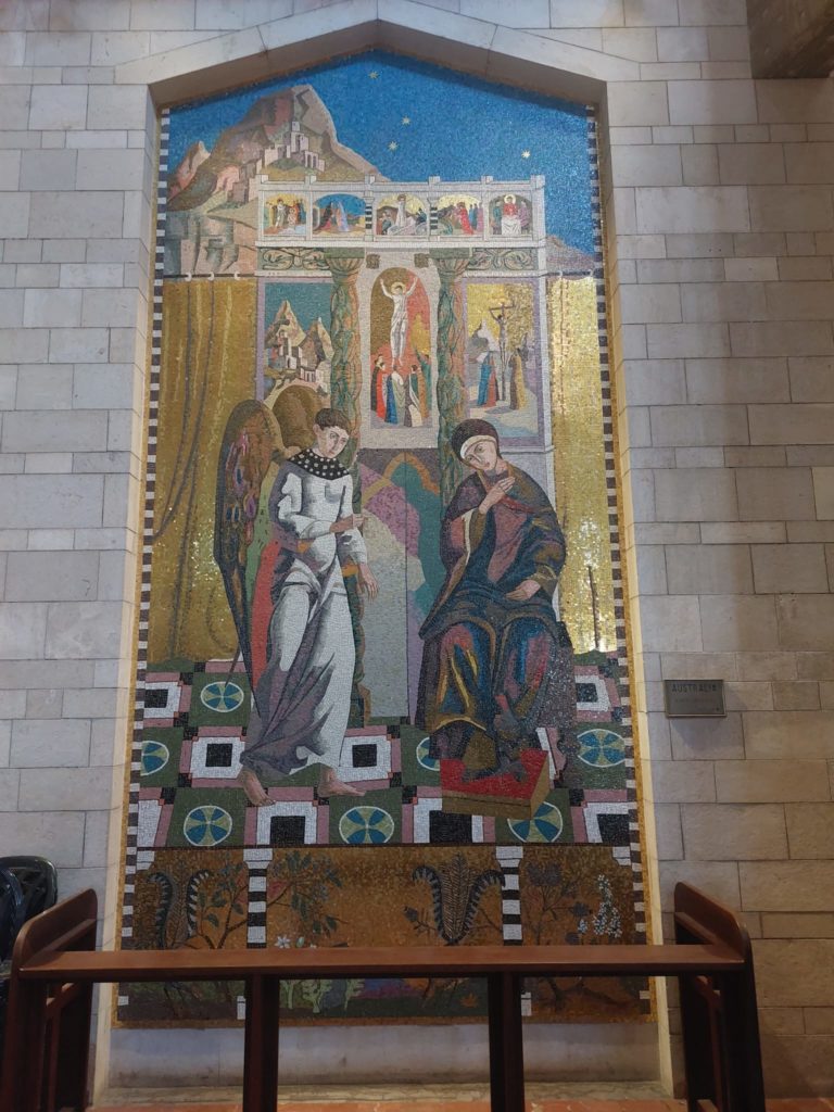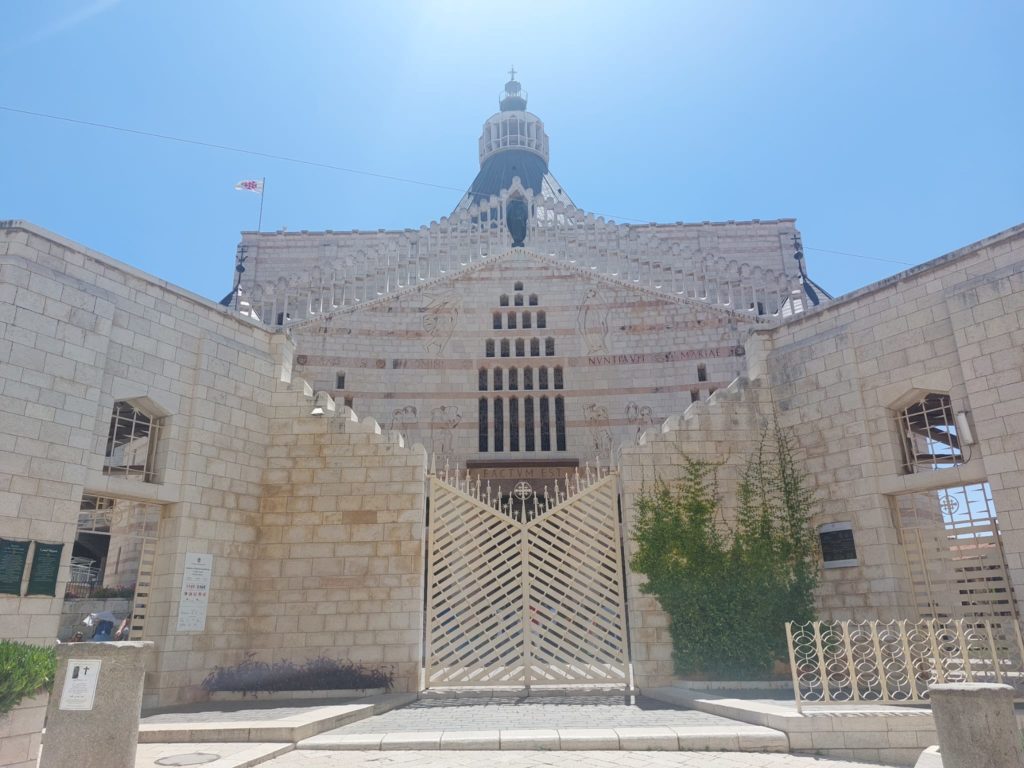Nel luogo dell’Annunciazione dell’angelo Gabriele a Maria, nella casa di lei a Nazareth, del suo concepimento verginale per opera dello Spirito Santo (“Ecco concepirai un figlio, lo darai alla luce e lo chiamerai Gesù”), oggi sorge la Basilica dell’Annunciazione.