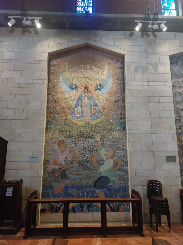 Esco dalla Basilica e faccio un giro sotto il colonnato circostante in cui sono esposte tante Madonne donate dalle Chiese di tutto il mondo, ciascuna raffigurante la cultura del proprio popolo. Si percepisce plasticamente il valore universale della figura di Maria.