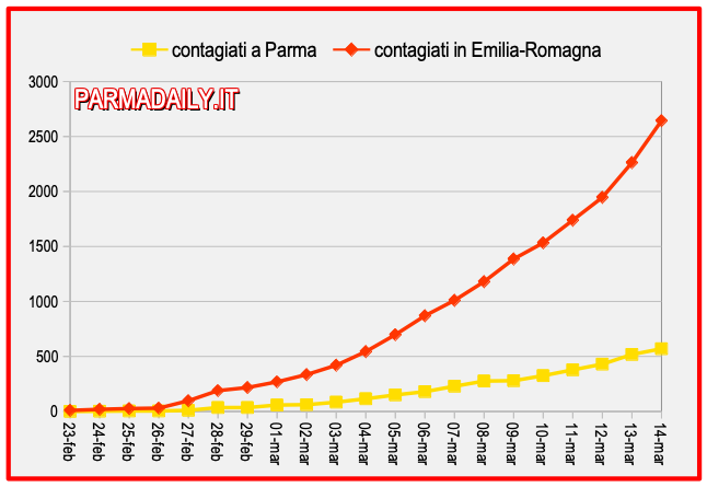 14/03 aggiornamento Coronavirus: in provincia di Parma 52 nuovi contagi, 8 morti