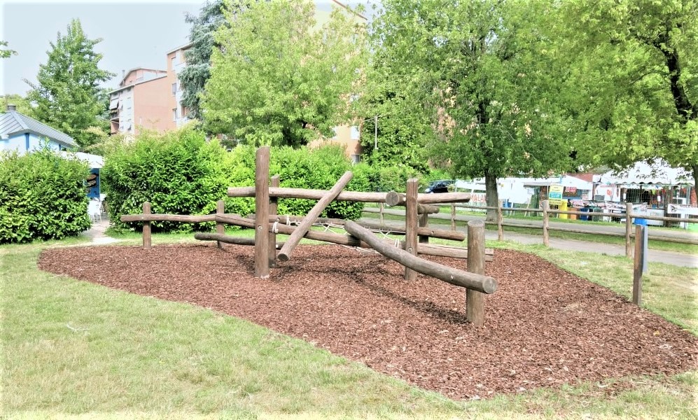 Le nuove strutture saranno installate in autunno, con apposita pavimentazione smorzacaduta in corteccia, nei seguenti Parchi: