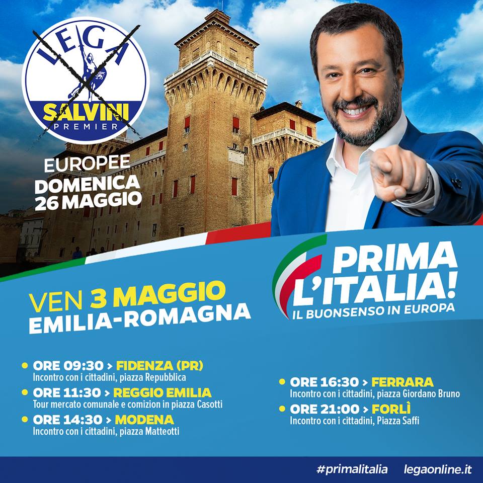 Il 3 maggio alle ore 09.30 Matteo Salvini sarà in Piazza Repubblica a Fidenza per incontrare i cittadini e sostenere la candidatura a sindaco di Andrea Scarabelli, appoggiata da una lista civica e dai partiti del centrodestra (Lega, Fratelli d’Italia, Forza Italia).