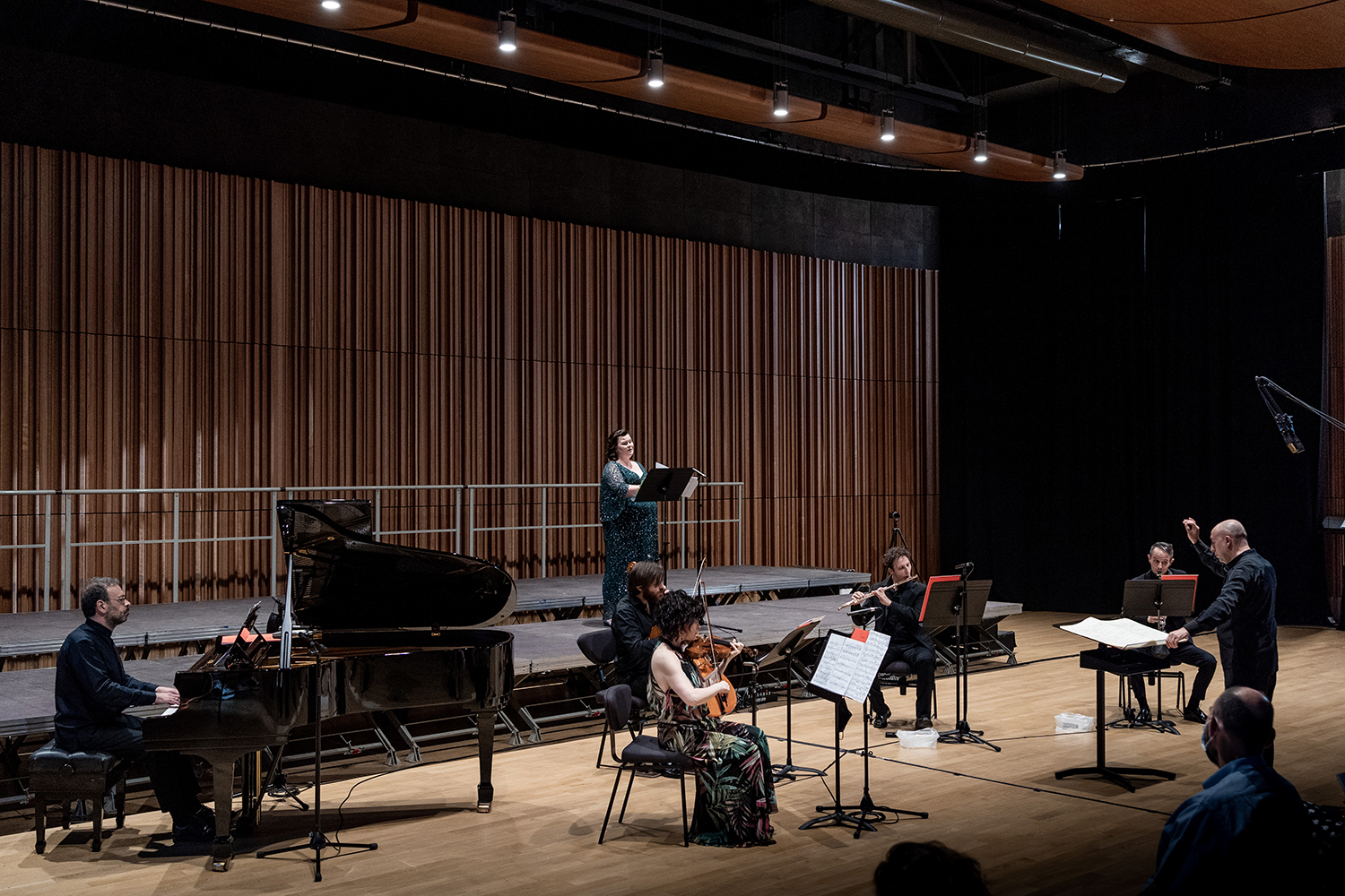 Ensemble Prometeo si propone in questa serata come di consueto sotto la direzione di Marco Angius, con Giulio Francesconi al flauto, Michele Marelli al clarinetto, Fabio Bagnoli al corno inglese, Grazia Raimondi al violino, Sabina Bakholdina alla viola, Michele Marco Rossi al violoncello, Ciro Longobardi al pianoforte e Simone Beneventi alle percussioni, voci soliste per il brano di Traversa saranno il mezzosoprano Katarzyna Otczyk e il basso Giacomo Pieracci.