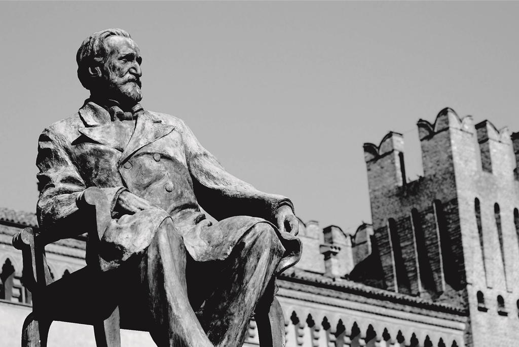 L’immagine del Concorso Internazionale Voci Verdiane Città di Busseto è un particolare del monumento in bronzo a Giuseppe Verdi, opera dello scultore Luigi Secchi, inaugurato nel 1913 nella piazza centrale di Busseto intitolata al Maestro.