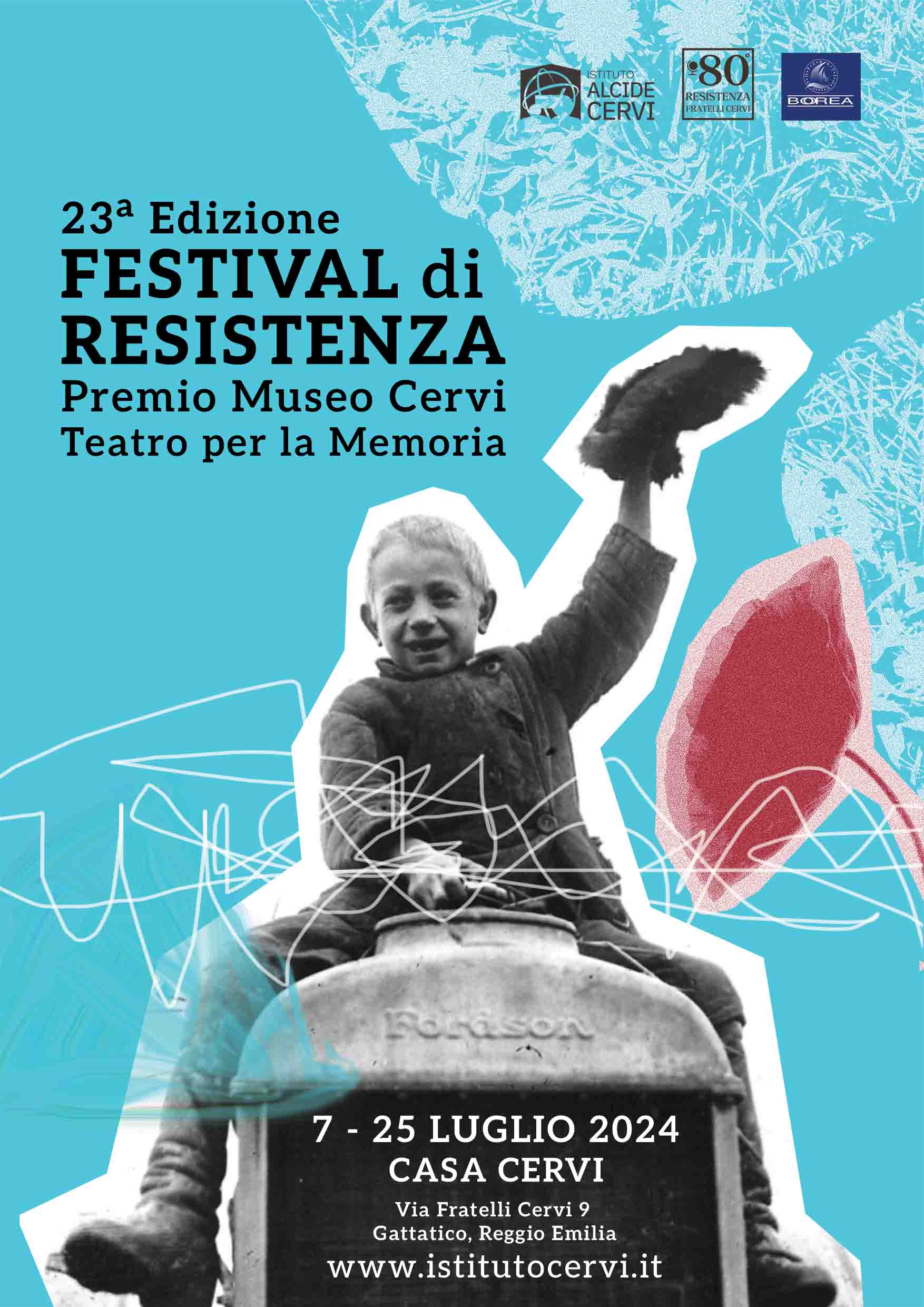 Giunge alla 23^ edizione il Festival di Resistenza che si svolgerà dal 7 al 25 luglio negli spazi esterni di Casa Cervi, rassegna di teatro civile contemporaneo, ideata e promossa da Istituto Alcide Cervi insieme a Boorea Emilia Ovest, con il sostegno di Proges e Conad Centro Nord, con i patrocini di Regione Emilia-Romagna, Provincia di Reggio Emilia, Provincia di Parma, Comune di Parma, Comune di Reggio Emilia, Restate, Comune di Campegine, Comune di Gattatico, Università di Parma, Fondazione I Teatri di Reggio Emilia.