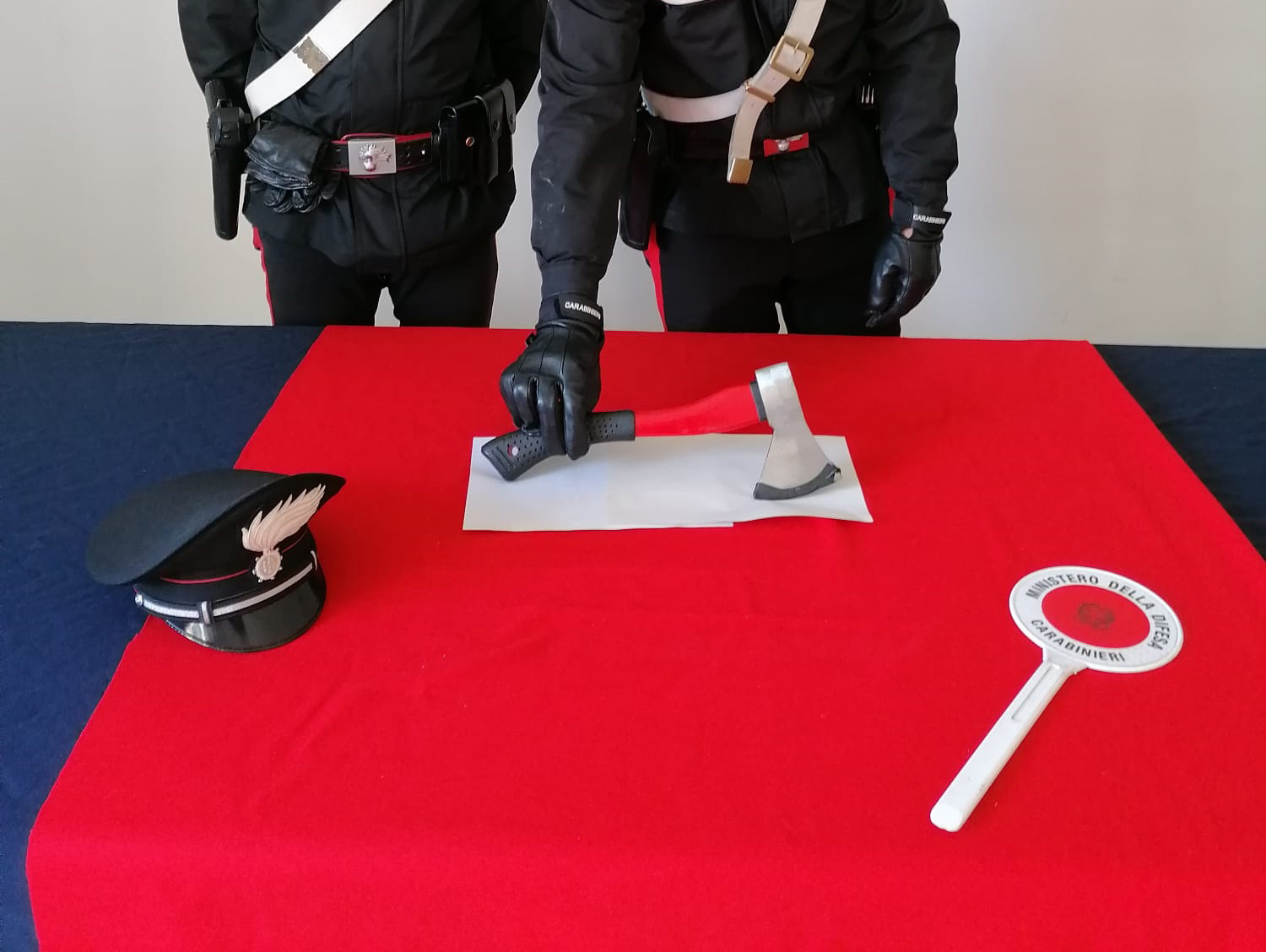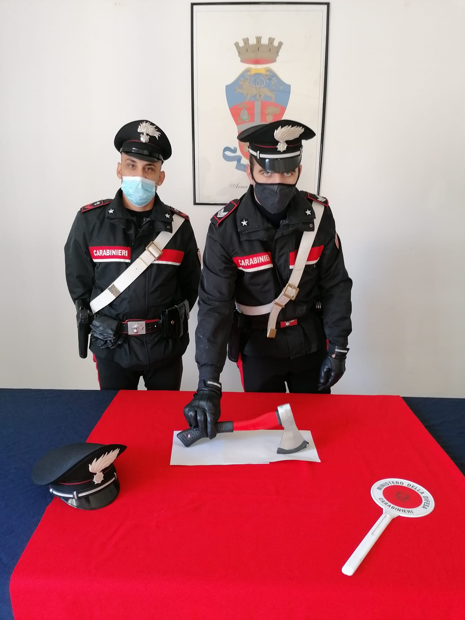 L’uomo sempre brandendo l’ascia continuava a minacciare i presenti. Gli inquilini del palazzo, richiamati dalle urla, escono sui pianerottoli e chiamano i Carabinieri. La pattuglia arrivata sul posto calma gli animi e sequestra l’ascia che nel frattempo il 42enne aveva nascosto in camera da letto. Lo stesso è stato denunciato per minaccia aggravata, porto abusivo di oggetti atti ad offendere e lesioni.