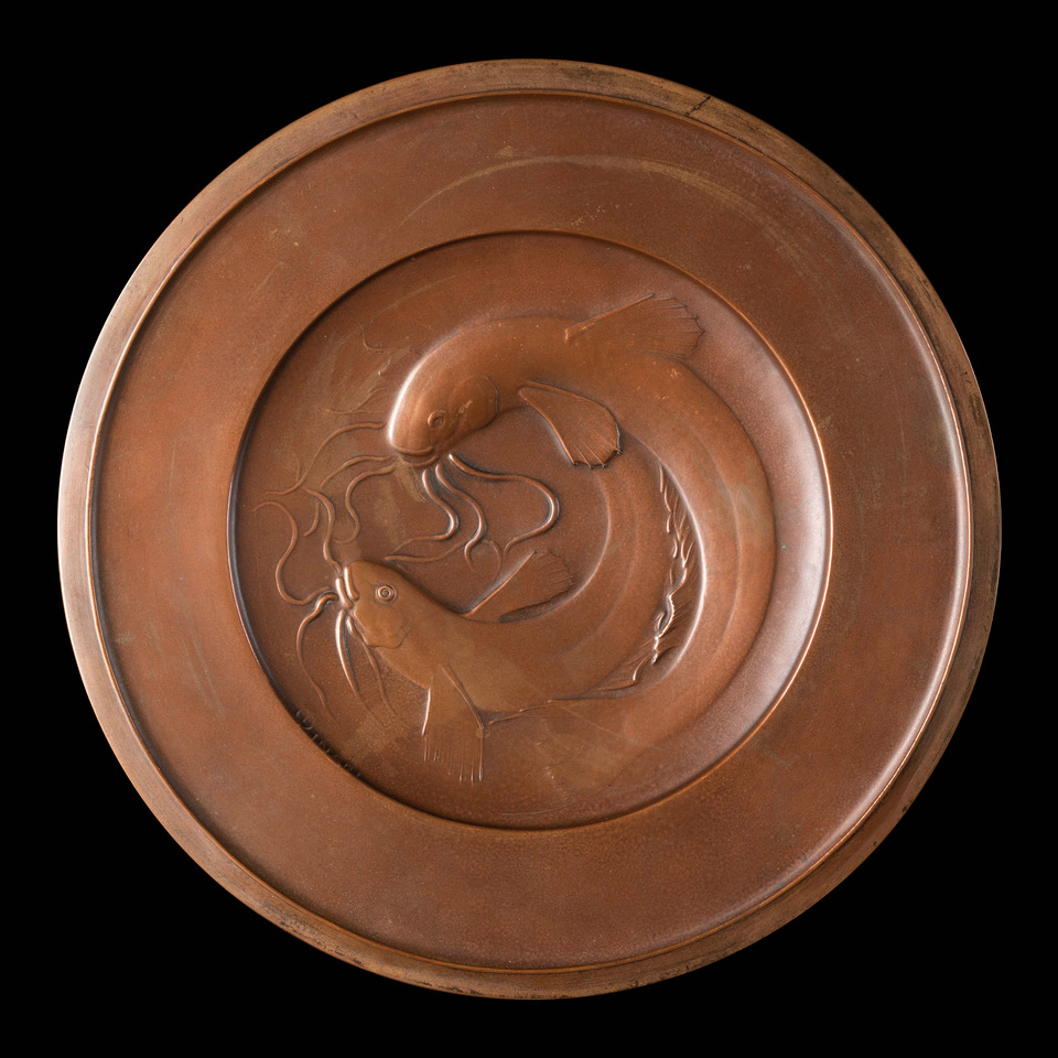 Appassionato collezionista, Claudio Cantadori ha acquistato sul mercato anche opere del capostipite della scuola, Renato Brozzi, e un’opera di Mario Minari, un piatto sbalzato in rame con coppia di pesci gatto, pensando ad un nucleo omogeneo per scuola.