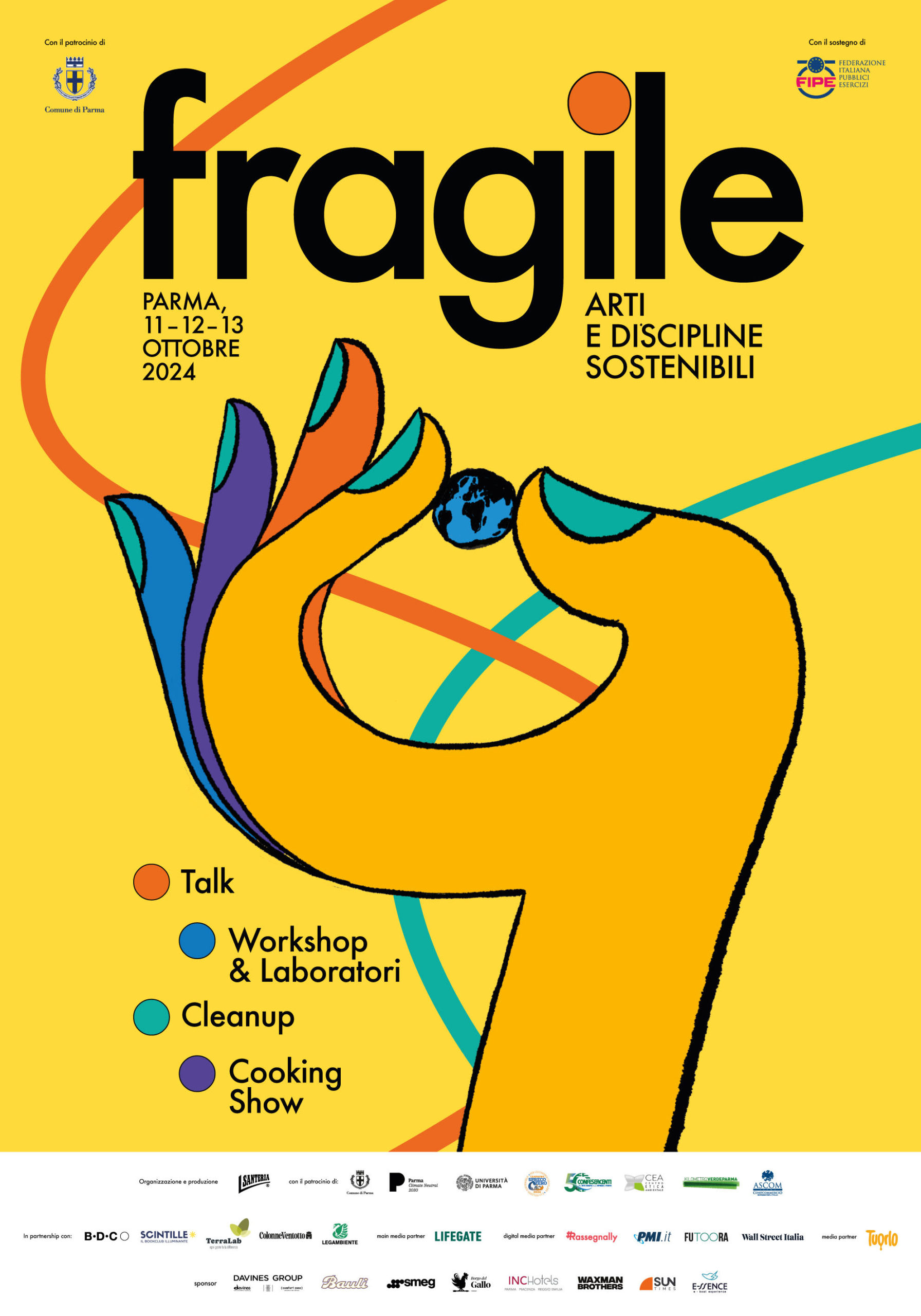 Santeria è lieta di annunciare i primi sette relatori ospiti di FRAGILE, il festival di Arti e Discipline Sostenibili, unico nel suo genere, che avrà luogo dall’11 al 13 ottobre 2024 a Parma in cinque splendide location diffuse in città – Colonne 28, Italia Veloce, due sedi di Laboratorio Aperto e il Palazzo del Governatore. Un evento imperdibile che, attraverso incontri, talk, workshop, show cooking e clean up, mira a stimolare un confronto tra cittadini, imprenditori ed istituzioni per costruire un percorso verso un futuro sostenibile.