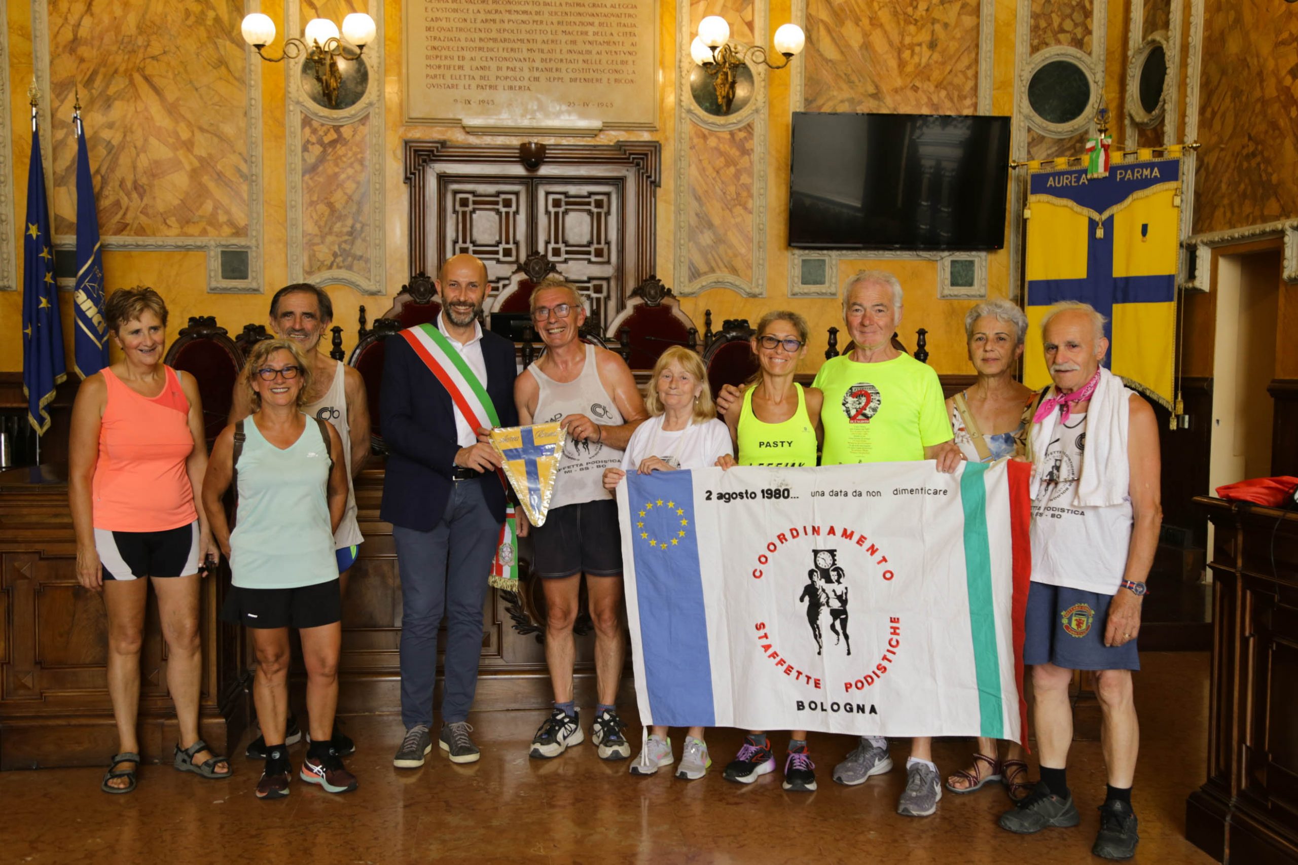 In occasione del 42° anniversario della strage di Bologna la staffetta “Per non dimenticare” ha fatto tappa a Parma. E’ stata accolta in piazza Garibaldi dal presidente del Consiglio Comunale Michele Alinovi, con una sosta in Municipio, contraddistinta da uno scambio di doni: il Presidente ha consegnato il gagliardetto del Comune ed i rappresentanti della staffetta hanno ricambiato con una lettera di ringraziamenti da parte dell’Associazione dei familiari delle vittime della strage di Bologna.