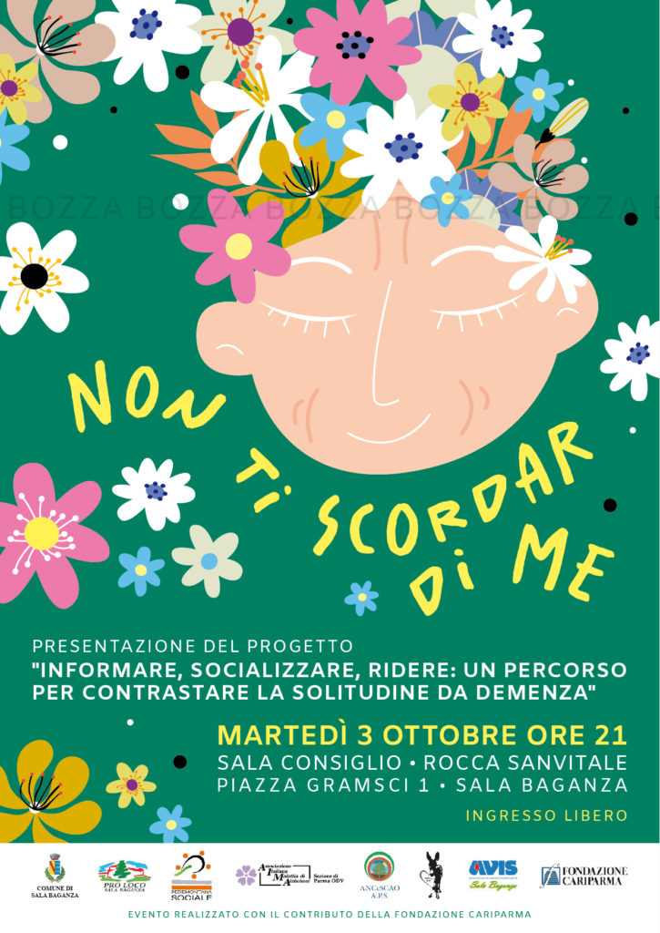 Questo l’obiettivo del progetto “Informare, socializzare, ridere: un percorso per contrastare la solitudine da demenza”, che verrà presentato martedì 3 ottobre alle ore 21 nella Sala consiglio della Rocca Sanvitale di Sala Baganza con una serata intitolata “Non ti scordar di me”. L’incontro, a ingresso libero, sarà moderato dal presidente dell’Avis, Ginetto Daglialberi, si aprirà con i saluti del sindaco, Aldo spina, e del presidente della sezione A.I.M.A. di Parma Gigetto Furlotti. A seguire l’illustrazione del progetto e gli interventi di Emiliano Pavarani, responsabile dell’Area anziani e disabili di Pedemontana sociale, del neurologo Marco Spallazzi e della psicologa-psicoterapeuta Sabrina Spaggiari, che parleranno delle demenze, delle azioni per la prevenzione, delle cure farmacologiche e non, ma anche dell’importante aspetto del sostegno alle famiglie.