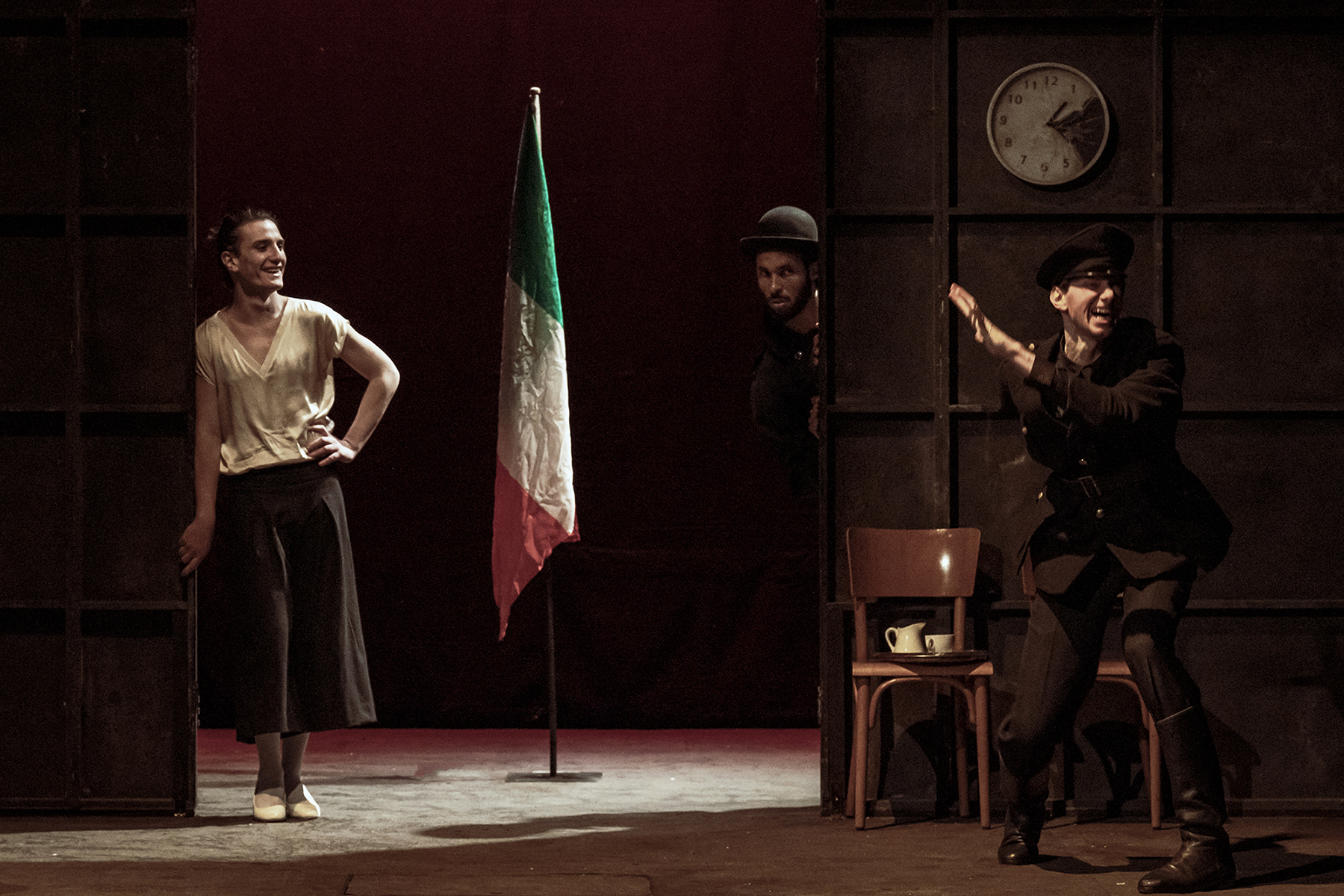 L’arte della commedia, la straordinaria e geniale opera di Eduardo fa parte della raccolta dei “giorni dispari”, le commedie scritte dal dopoguerra in poi che affrontano le difficili e problematiche questioni del vivere quotidiano, delle relazioni private e pubbliche tra gli esseri umani. Incredibile è la forza e l’attualità del testo che ci porta in maniera implacabilmente diretta a confrontarci con la mortificazione e la censura della cultura attraverso un’ambigua e allo stesso tempo tragica e farsesca commedia.