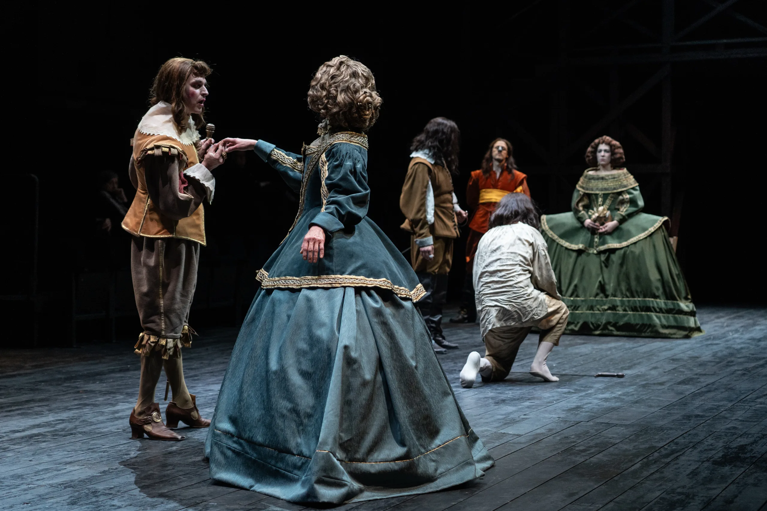 Lo spettacolo coinvolge un ampio cast corale e propone un allestimento ricco e suggestivo: i costumi d’epoca firmati da Andrea Sorrentino, ispirati alla pittura di Velázquez e Rembrandt, creano un’atmosfera festosa e variopinta, mentre duelli e scene d’azione – curati dal maestro d’armi Renzo Musumeci Greco – contribuiscono a costruire una narrazione dinamica e coinvolgente, arricchita dalle luci di Luca Bronzo.
