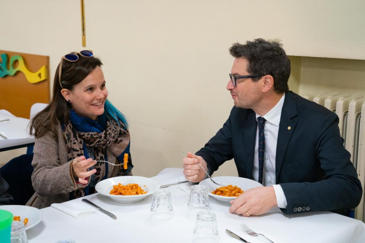 Pausa pranzo a scuola per il Sindaco Michele Guerra e l’Assessora ai Servizi Educativi del Comune di Parma Caterina Bonetti.