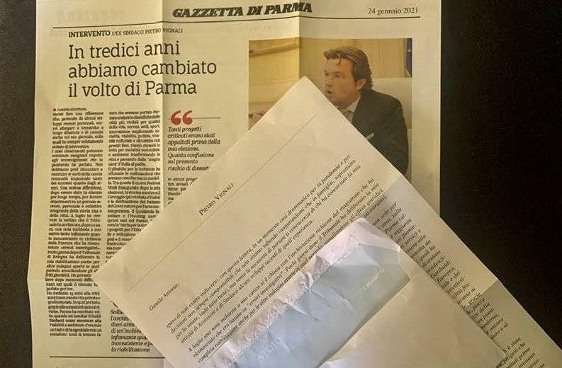Sono tanti i parmigiani che in questi giorni hanno ricevuto per posta la lettera dell’ex sindaco Pietro Vignali, di recente risarcito dal Ministro della Giustizia per indagini troppo lunghe (archiviate nel 2020 dalla PM Paola Dalmonte) relative all’assunzione di alcuni dirigenti comunali (LEGGI).