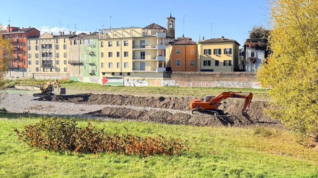 AIPo (Agenzia Interregionale per il fiume Po) ha avviato un intervento di sistemazione e miglioramento dell’alveo del torrente Parma nel tratto cittadino, tra Ponte di Mezzo e Ponte delle Nazioni. I lavori consistono, in particolare, nella manutenzione straordinaria del muro spondale posto in sinistra a valle del Ponte di Mezzo, tramite la ricostruzione di un tratto di circa 20 metri, nel ripristino della sezione di deflusso, mediante movimentazione del materiale accumulatosi in alveo, e nella sistemazione della pista di servizio in sinistra al di sotto della prima campata del Ponte di Mezzo e di Ponte Verdi.