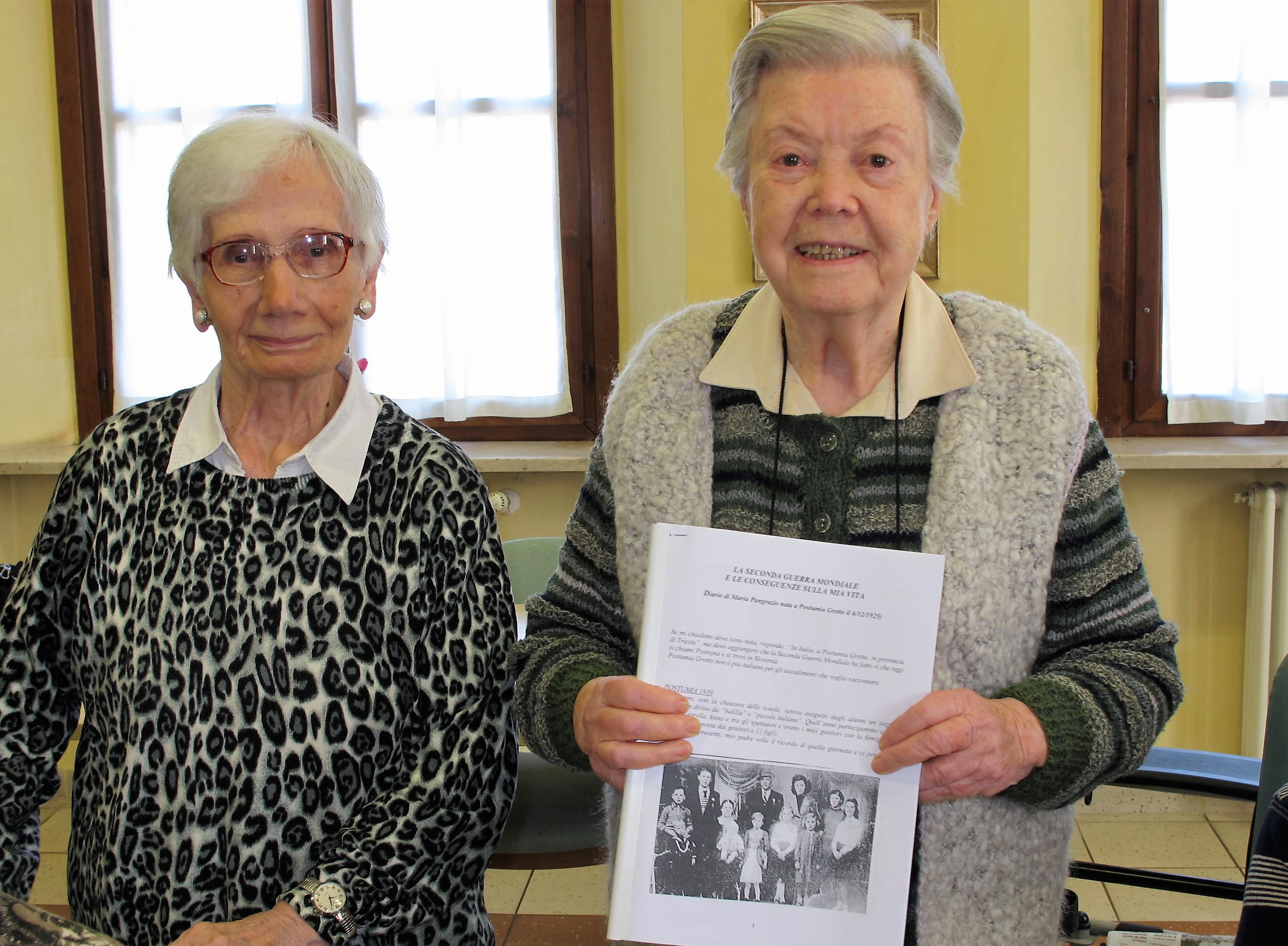 Nel pomeriggio onore alla memoria e alla cultura popolare che gli anziani possono tramandare con la presentazione del volume-diario della brillante 94enne Maria Pangrazio. Il Centro ha raccolto il vissuto di questa signora lucidissima che legge, dipinge e racconta. Maria nata a Postumia Grotte nel 1925 (cittadina oggi istriana) ha riassunto l’epopea della sua famiglia divisa dalla Guerra e il dramma dell’esodo che l’ha portata a Parma.