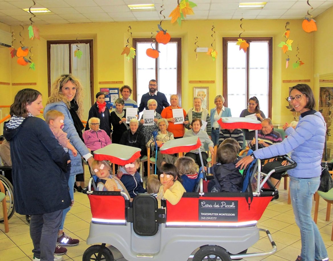 Ospiti dai capelli d’argento che, grazie agli operatori della Cooperativa Società Dolce, trascorrono insieme diverse ore della giornata con attività e laboratori di stimolazione cognitiva per il mantenimento delle capacità residue. Un merenda insieme, piccoli e grandissimi, ha suggellato la complicità che si è creata tra le generazioni presenti nel salone delle feste.