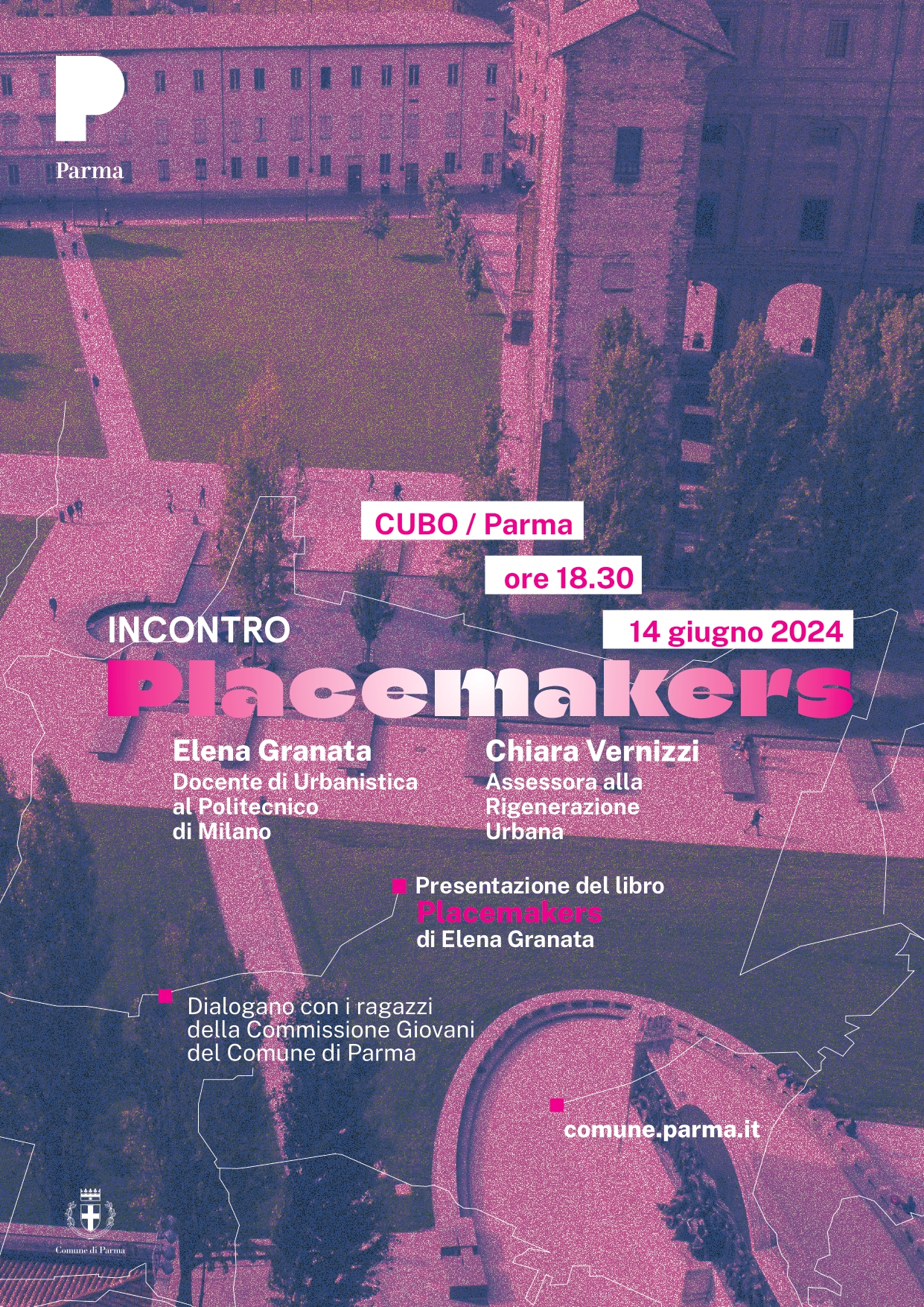 Venerdì 14 giugno, alle 18.30, al CUBO di Parma (via La Spezia 90), si svolgerà la presentazione del volume “Placemaker. Gli inventori dei luoghi che abiteremo” di Elena Granata, un libro che racconta e descrive figure professionali innovative per immaginare e progettare le città del futuro: dal politico-pedagogista, all’imprenditore-artista, dall’informatico-ambientalista all’architetto-giardiniere.