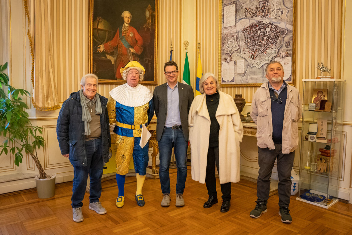 “Al Dsèvod”, tipica maschera parmigiana voluta dalla Famija Pramzana e riconosciuta da tutta la città, ha fatto visita al sindaco, Michele Guerra, nel suo tour legato agli auguri di buon lavoro e di buon anno alle autorità cittadine.