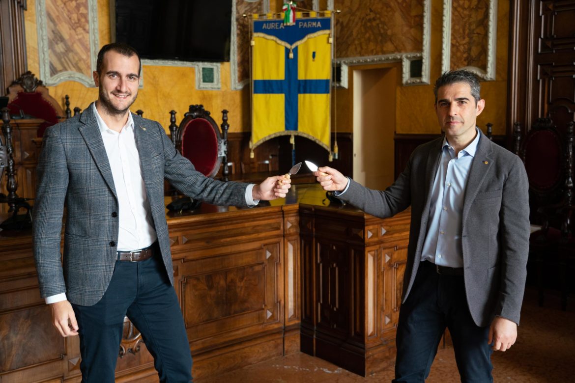 Federico Pizzarotti e Marco Bosi lo accompagnano ora con queste immagini e proseguirà presso gli store “Adriana Rosi ” di Euro e Centro Torri (e per chi lo volesse prenotare da lontano 0521/287564 e il 347/2386351 o laura@adrianarosi.it) dove si protrà acquistare questo speciale coltellino da formaggio che parla parmigiano.