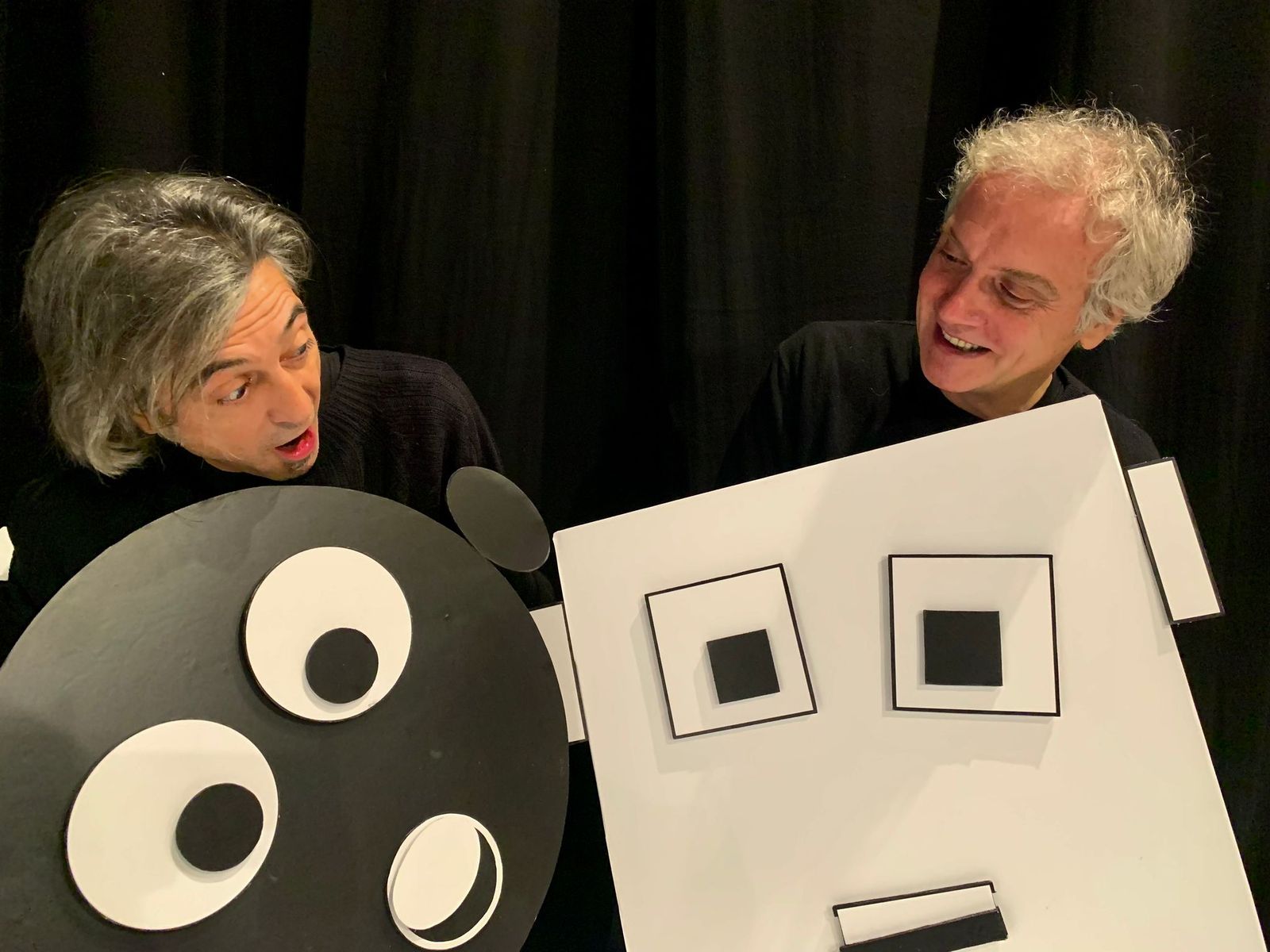 Così, quando una tempesta di vento scompiglia limiti e ostacoli che si ritenevano inconciliabili, i due protagonisti si trovano a costruire insieme un mondo nuovo, pieno di forme e suoni contaminati. Un prezioso aiuto ai due protagonisti arriverà loro dai bambini presenti in sala, chiamati a entrare nel tappeto della storia per rendere visibile l’invisibile. Solo allora Quadrotto e Tondino capiranno come unire le loro forme per riuscire a volare e cercare insieme la luna.