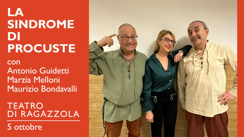 Sabato 5 OTTOBRE ore 21.15, al Teatro di Ragazzola, “La sindrome di Procuste” della compagnia Artemisia Teater di Antonio Guidetti, ingresso 10 euro, gratuito per gli abbonati alla stagione teatrale 2024_25