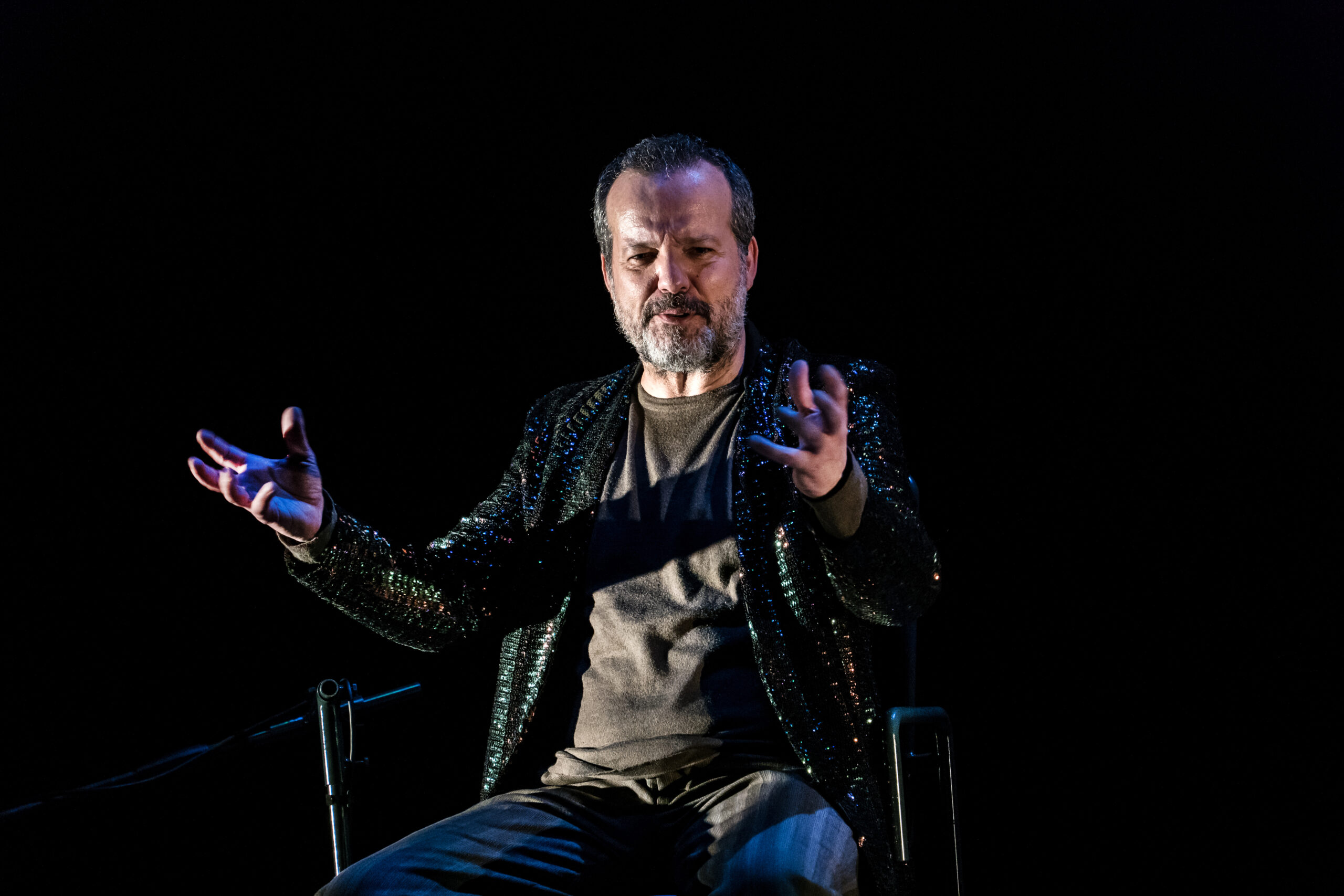 Lo struggente monologo ha per protagonista un abitante del Cottolengo, il Nano del romanzo autobiografico “La giornata d’uno scrutatore”, personaggio cui Calvino dedica una sola pagina se pur memorabile: “Ho scelto lui e ne ho immaginato tutta l’esistenza – continua l’attore – esistenza che Calvino non ci racconta, proprio perché il mio intento era ragionare intorno al concetto di libertà e il Nano del romanzo ne è totalmente privo. E torno così alle ragioni prime del mio progetto: non certo uno spettacolo su Calvino, ma uno spettacolo sulla libertà, sull’autodeterminazione, tema che occupa da molto tempo i miei pensieri sull’uomo in quanto animale sociale e sulle storture che mi fastidiano nel nostro convivere quotidiano. Per mia fortuna lo stesso tema ha assediato i pensieri di Italo Calvino lungo tutta la sua parabola letteraria, attraversando ugualmente i romanzi realistici, così come quelli fantastici e l’epoca combinatoria. Questo mi ha consentito di coniugare il mio “ragionare di libertà” con la possibilità di affrontare un autore che ho molto amato ma che mai avevo osato accostare al mio teatro. Ho sempre pensato, difatti, che Calvino fosse impossibile da rappresentare, almeno così com’è”.