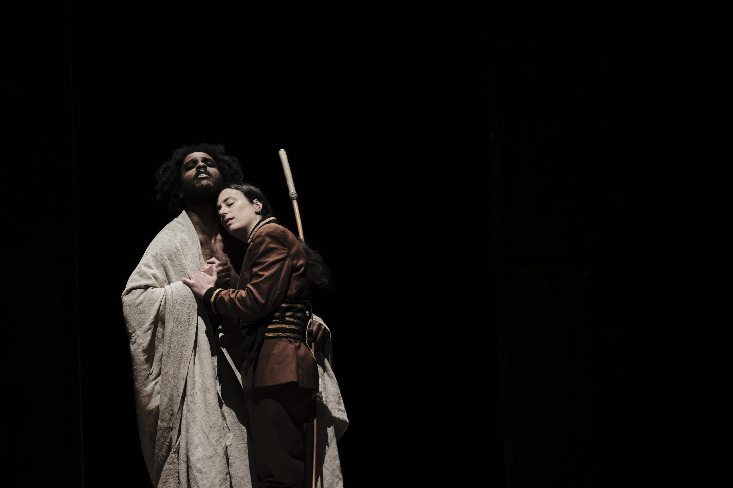 Per ricostruire oggi quel sapere collettivo che esonerava il poeta tragico dal dover volgere in prosa il mito e lo legittimava a sollecitare immediate visioni nel pubblico, Serra ha scelto il grecanico, lingua che ancora oggi risuona in un angolo remoto di quella che fu la Magna Grecia, una striscia di terra che dal mare si arrampica sull’Aspromonte scrutando all’orizzonte l’Etna.