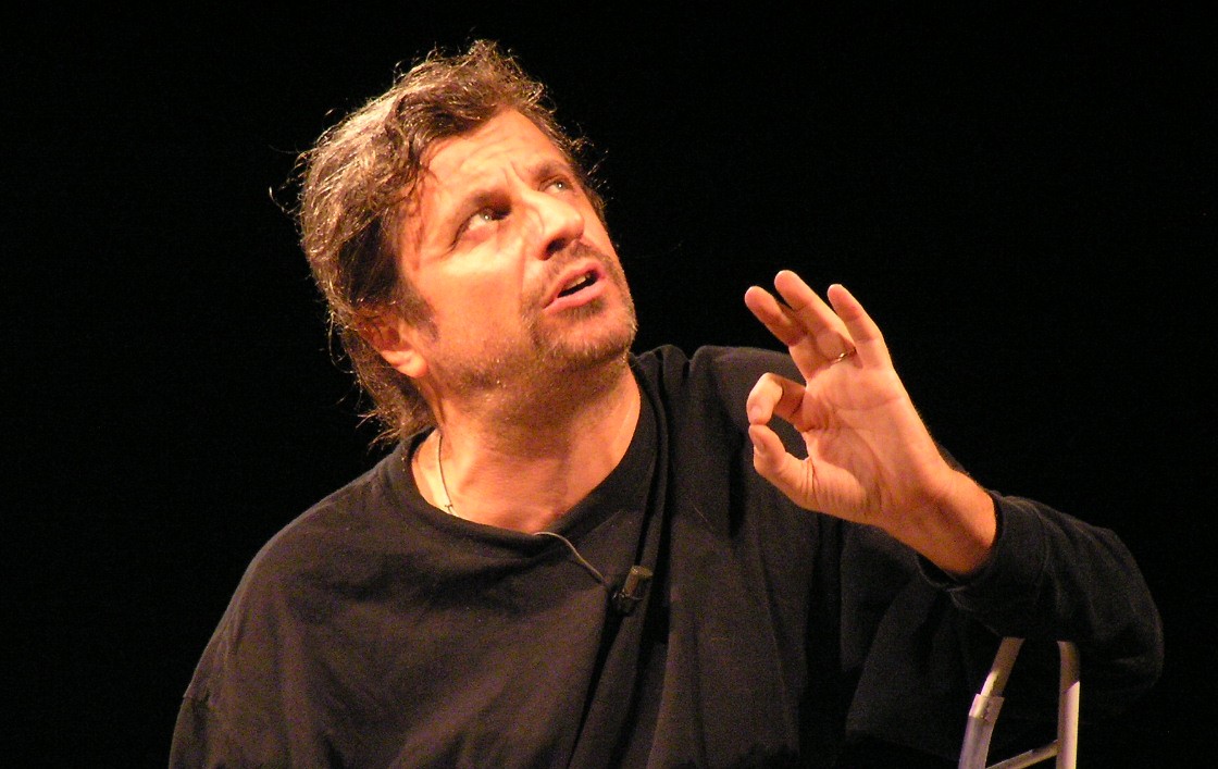 Bolognese, classe ’58, Alessandro Bergonzoni è uno dei più eclettici artisti di teatro in Italia, con il suo spigliato umorismo che gli hanno permesso di guadagnare tanto l’apprezzamento del pubblico quanto quello della critica. Nella stagione 2004/2005 vince il Premio della Critica dell’associazione nazionale critici di teatro, nel 2008 il Premio Hystrio-Teatro Festival di Mantova e poi riceve il Premio UBU 2009 per la migliore interpretazione maschile del teatro italiano. Quella da lui condotta negli anni è una ricerca di un continuo confronto sui temi della comicità, da lui sentita come prodotto artistico primario e fondamentale. Su questa scia ha avviato una serie di incontri-seminari, che ancora oggi continuano, con studenti universitari e liceali in tutta Italia. Oltre che attore comico e vero e proprio artista, è scrittore di libri e su diverse testate e riviste, dal Corriere della Sera a Sette e Panorama, senza dimenticare le collaborazioni radio televisive tra cui Tele+1 e Radio2. Impegnato anche nel sociale con la “Casa dei Risvegli – Luca De Nigris” per cui cura alcuni spot, divenendone testimonial e tenendo diversi incontri in ospedali e università. Nel cinema è ricordato nel ruolo del direttore del circo nel “Pinocchio”di Roberto Benigni (2001).