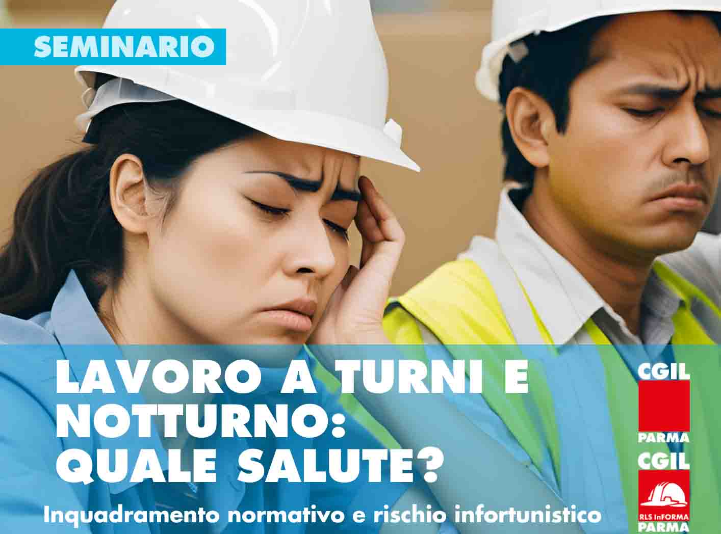 In occasione della Settimana europea della salute e sicurezza sul lavoro Cgil Parma e il suo staff Rlst organizzano un seminario di approfondimento sul tema “Lavoro a turni e notturno: Quale salute? Inquadramento normativo e rischio infortunistico” per martedì 19 novembre, alle 9.30, nel salone Trentin della Camera del Lavoro di Parma, in via Casati Confalonieri, 5/A.