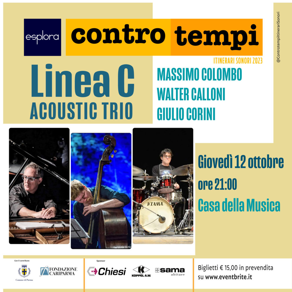 Il primo appuntamento sarà per giovedì 12 ottobre nella Sala dei Concerti di Casa della Musica di Parma con il concerto di Linea C Acoustic Trio (formato da Massimo Colombo al pianoforte, Walter Calloni alla batteria e Giulio Corini al contrabbasso) che eseguiranno alcuni brani del loro repertorio originale sommati ad alcune elaborazioni di classici del jazz, tratti dagli ultimi dischi di Colombo e dedicati a Bud Powell, Weather Report e Charlie Parker. Sarà un viaggio attraverso differenti linguaggi musicali che da sempre caratterizzano il percorso esplorativo del trio.