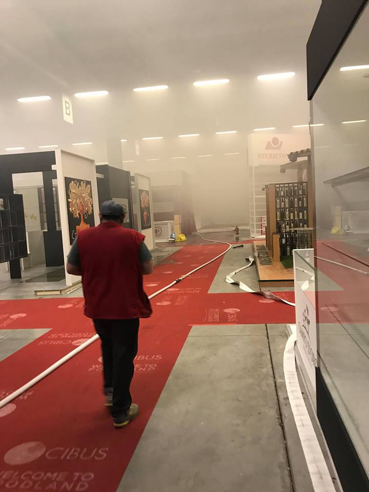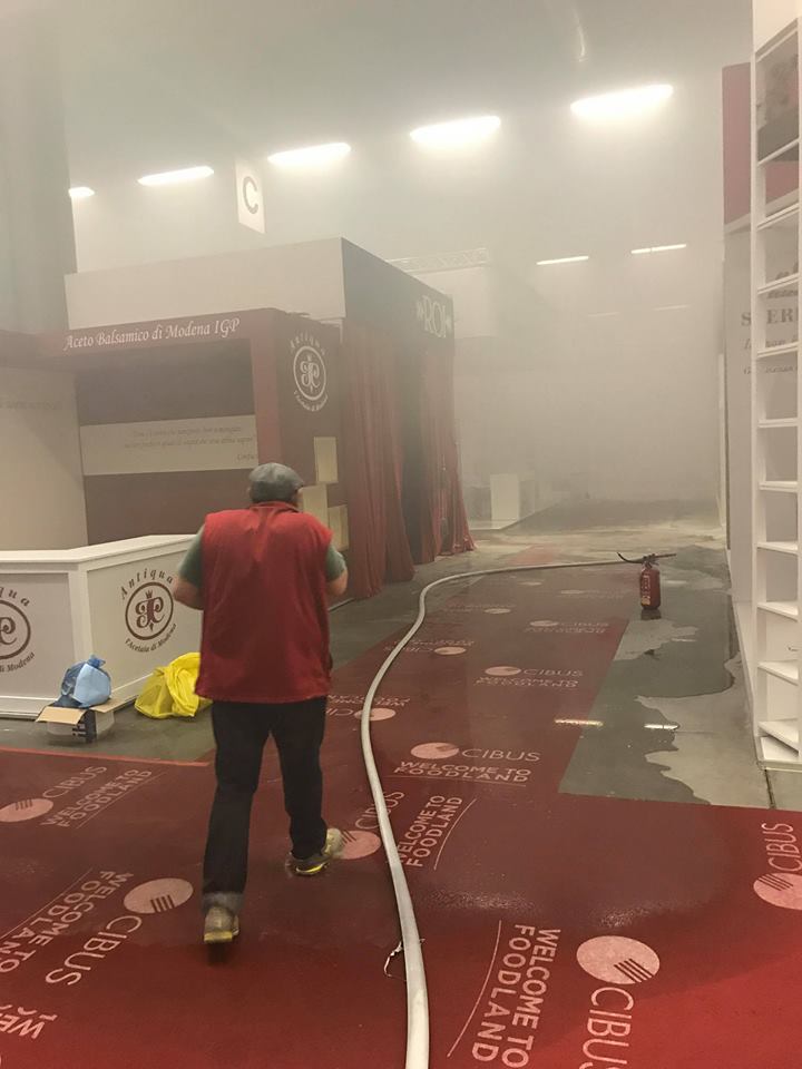 Allarme alle Fiere di Parma poco dopo la chiusura di Cibus: ieri sera è scoppiato un incendio in uno stand e sono intervenuti i vigili del fuoco.
