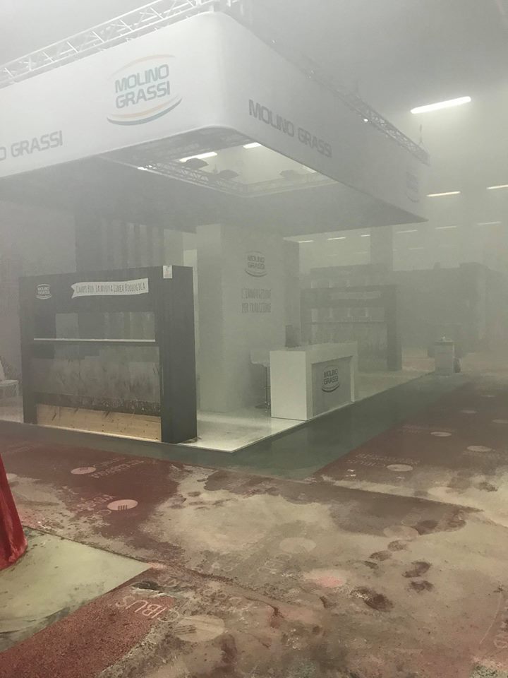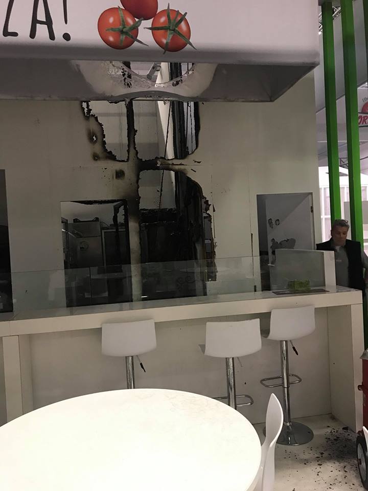 Le maestranze intente a effettuare i primi disallestimenti hanno notato del fumo e un odore acre provenire da uno degli stand.