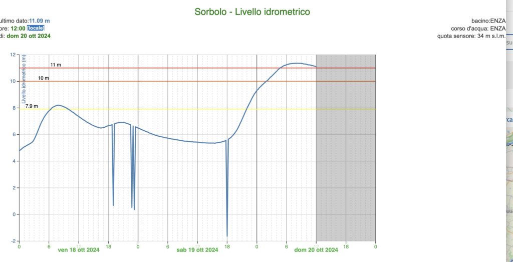 Allerta rossa per l’Enza a Sorbolo. Il video del sindaco Guerra di UG 20 Ottobre 2024 20 Ottobre 2024 167 E’ allerta rossa per il livello dell’Enza a Sorbolo. Nel resto della provincia i livelli del fiumi sono sotto la soglia rossa. La mappa pubblicata è relativa alle ore 12.00 di oggi.