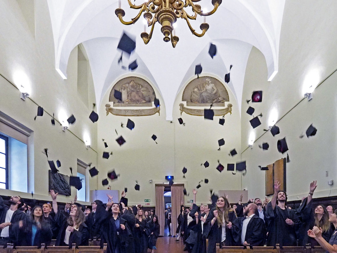 La cerimonia si è chiusa con la proclamazione collettiva da parte del Rettore e il tradizionale lancio dei tocchi.