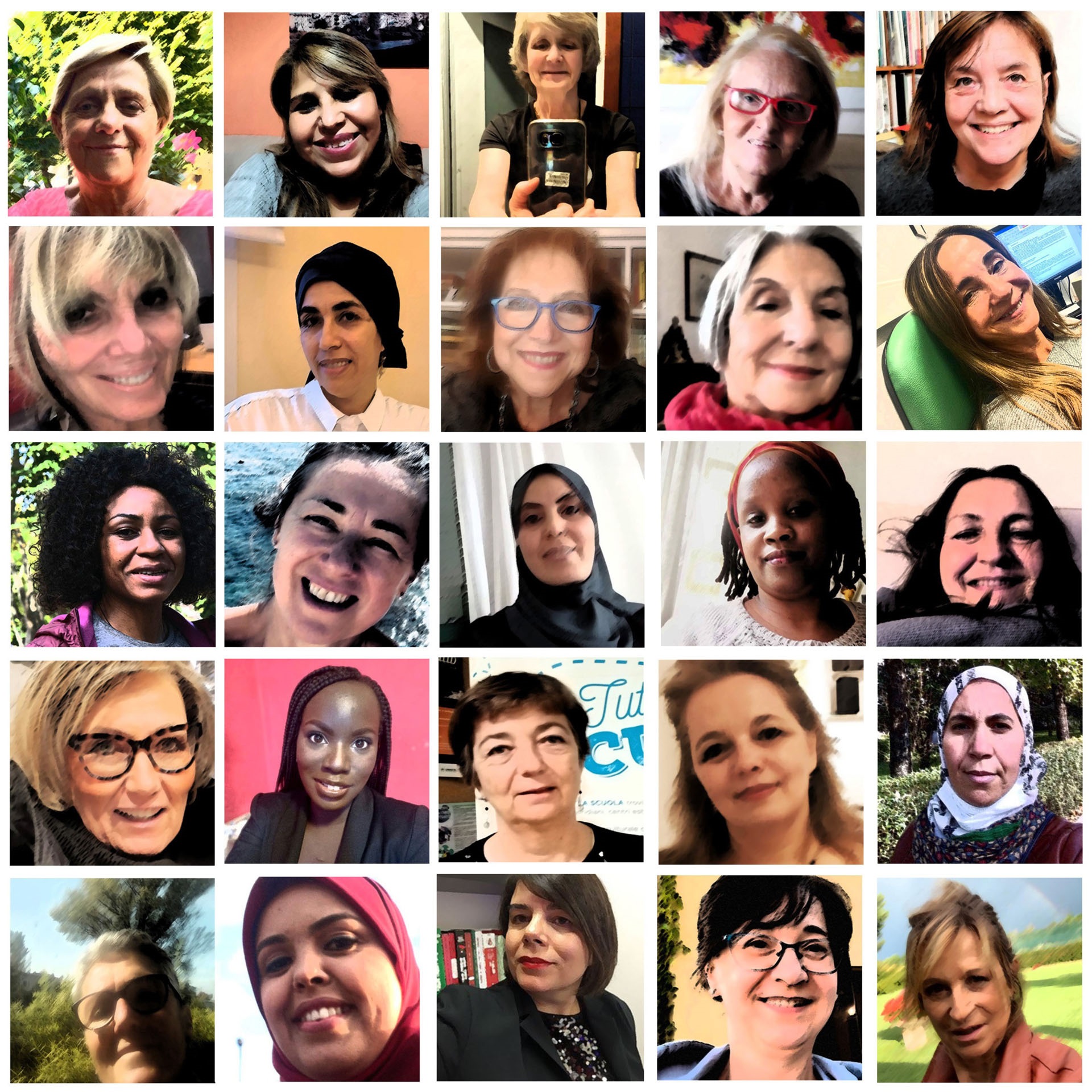 I volti delle donne che compongono il mosaico (Angela, Anna, Anna, Carolina, Claudia, Ebe, Edith, Elvira, Fatiha, Federica, Felicina, Fiammetta, Francesca, Khadija, Laura, Leila, Manuela, Maria, Marina, Marina, Nabila, Rita, Rosette, Rossana, Victoria) sono solo alcuni di quelli che, in questi difficili mesi, hanno avviato questo percorso culturale destinato a unire e, dunque, ad accorciare le distanze.