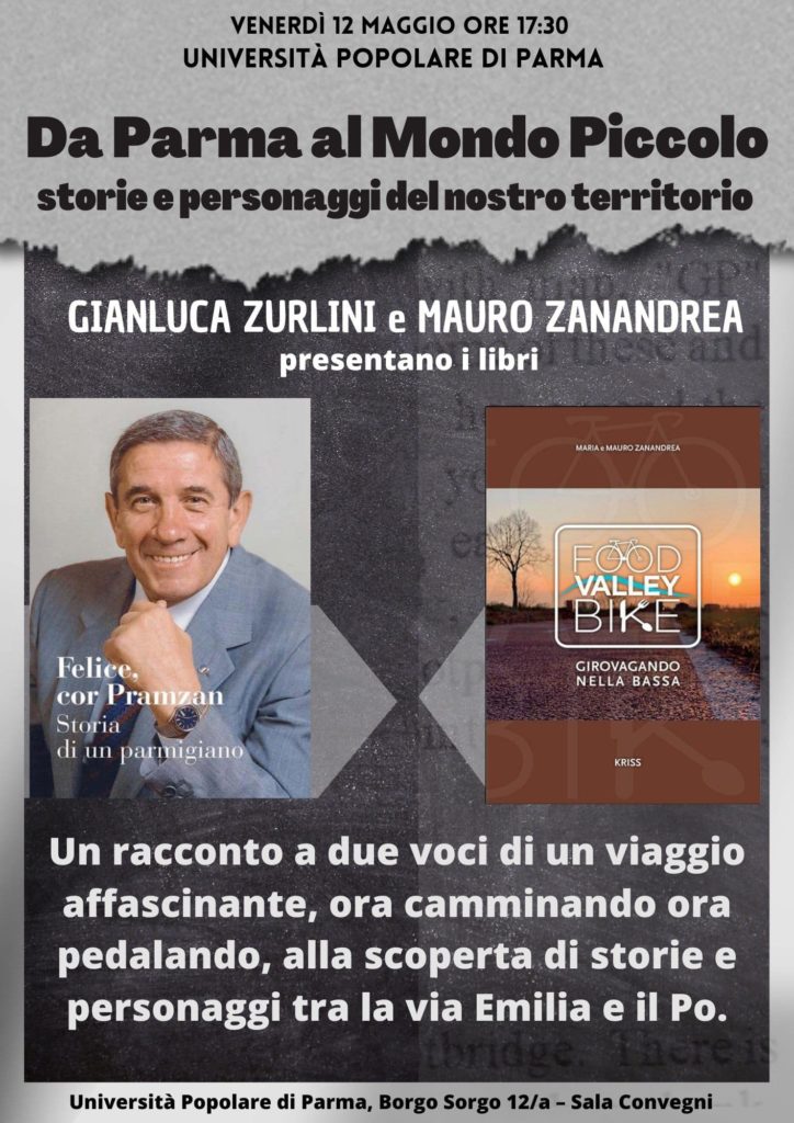 Nell’occasione Gian Luca Zurlini e Mauro Zanandrea presenteranno i libri “Felice, cor Pramzan. Storia di un parmigiano” e “Food Valley Bike. Girovagando nella Bassa”.
