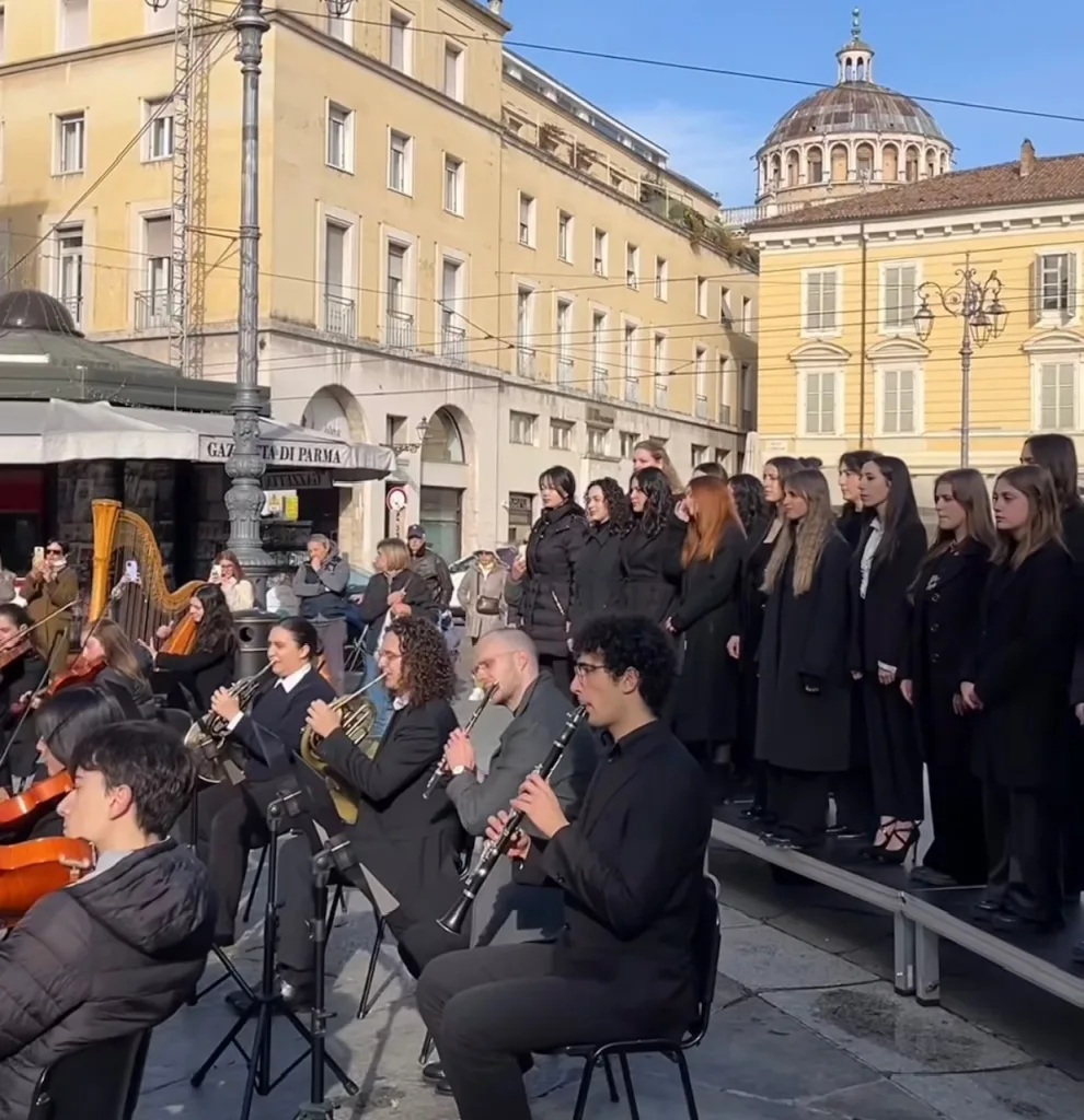 Parma è infatti una delle sei città scelte dalla Rai per la campagna ideata a supporto della 76ª edizione del Festival della Canzone Italiana, in programma dal 24 al 28 febbraio 2026. L’evento ha coinvolto cittadini e passanti in un flash mob musicale.
