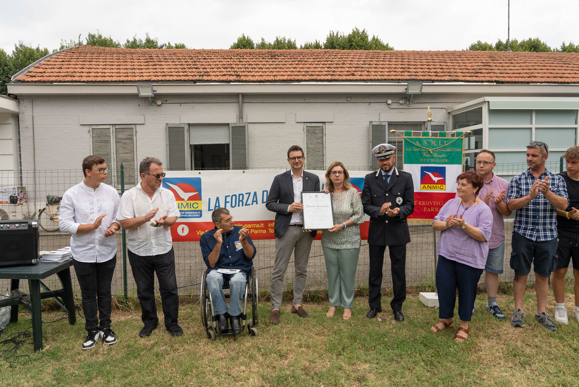 È andato alla memoria del Commissario del Corpo di Polizia Locale, Massimo Marchinetti, il “Premio Fabrizio Pelli” 2023. Il riconoscimento, istituito da Anmic Parma (Associazione Nazionale Mutilati e Invalidi Civili) e giunto alla terza edizione, è stato consegnato ai familiari di Marchinetti, in una cerimonia nell’area verde della sede dell’associazione, il Giardino di Luana, alla presenza del sindaco Michele Guerra, del Comandante di Polizia Locale, Enrico Usai, del presidente di Anmic Parma, Walter Antonini, dei familiari di Pelli (la moglie Marina, i figli Michele e Matteo, i nipoti Sebastiano e Letizia) e Marchinetti (la moglie Cinzia, il fratello Maurizio e il figlio Alexei), nonché alcuni volontari ed ex colleghi.