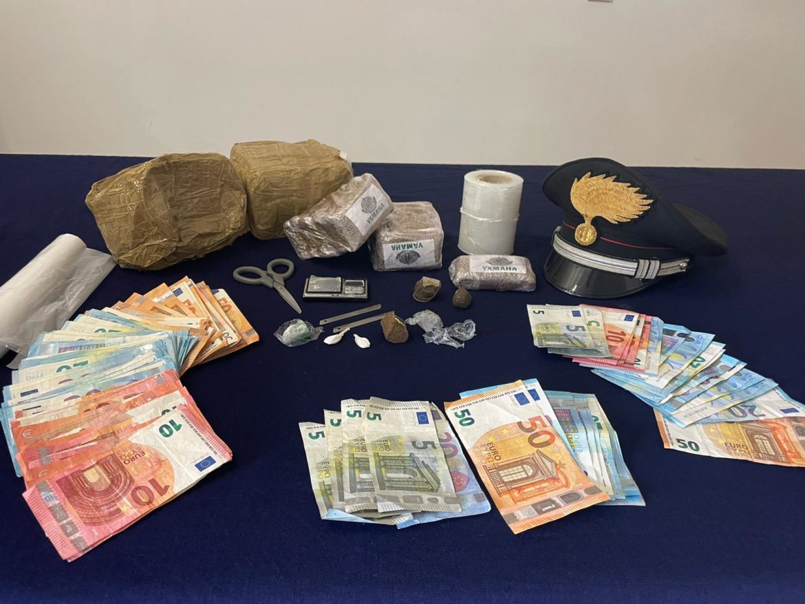La successiva perquisizione domiciliare consentiva di recuperare nascosto, in un armadio, oltre un chilo di hashish, suddiviso in 10 panetti, la somma di quasi 3 mila euro e tutto il materiale per il confezionamento. Condotto in caserma è stato tratto in arresto per detenzione ai fini di spaccio. Inoltre, è stato denunciato per lo stesso reato il 28enne coinquilino, in quanto nel corso della perquisizione è stato trovato con diversi grammi di stupefacente e circa 250 euro in contanti.