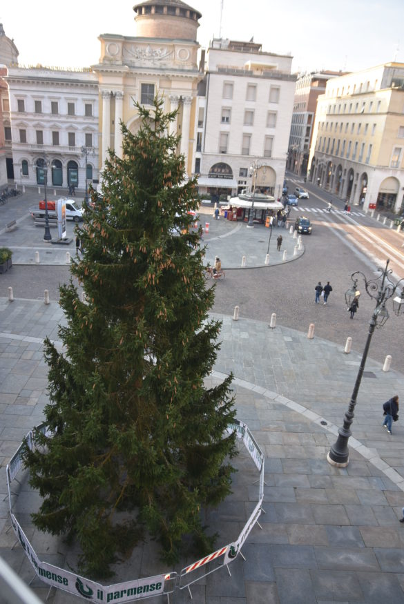 Donato dal Comune di Asiago e trasportato gratuitamente dalla ditta “Il Parmense Trasporti”, in collaborazione con i tecnici del Comune di Parma, è arrivato in piazza Garibaldi l’abete che accompagnerà le festività natalizie dei parmigiani.