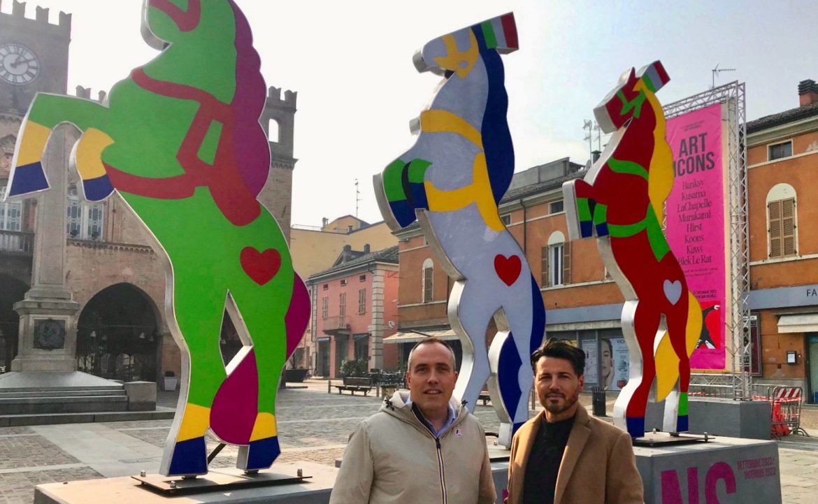 La mostra ha lasciato un segno indelebile nel cuore di Fidenza e nei suoi visitatori, ma ne lascia anche uno fisico e di grande impatto evocativo nella nostra città. I tre grandi cavalli da realizzati da Marco Lodola, utilizzati dal 23 giugno scorso per annunciare Art Icons, sono stati infatti rimossi dall’ingresso di via Berenini e hanno fatto ritorno in piazza Garibaldi, per rimanervi un po’ di tempo, a testimonianza della stretta alleanza tra Fidenza e l’arte contemporanea che questa mostra ha definitivamente certificato.