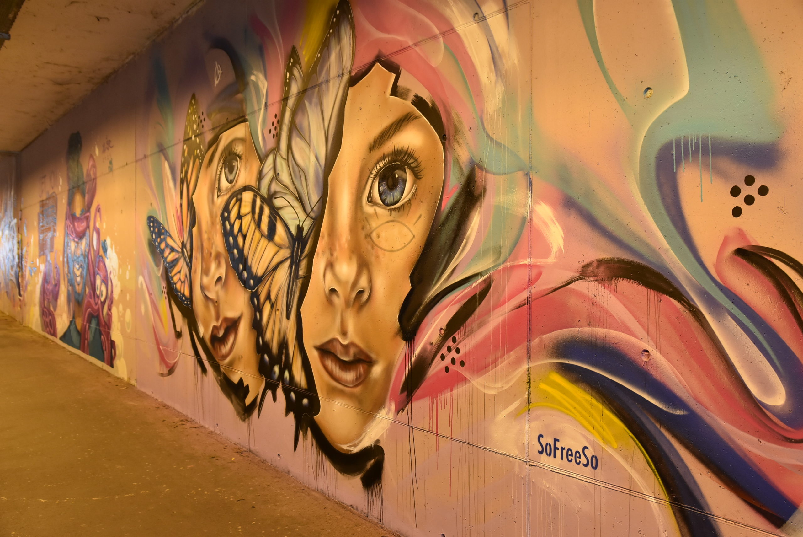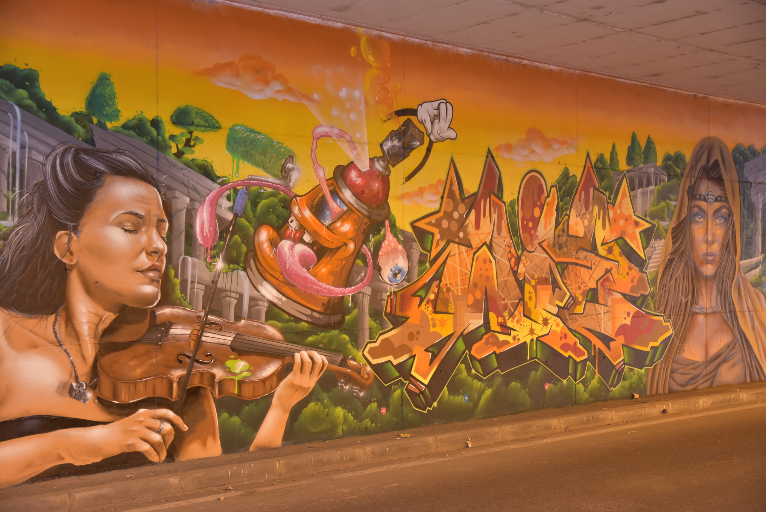 Sono vere e proprie opere d’arte i graffiti che ornano il sottopasso tra via Reggio (rotatoria ponte Europa) e via Spinelli via Giulio Cesare.