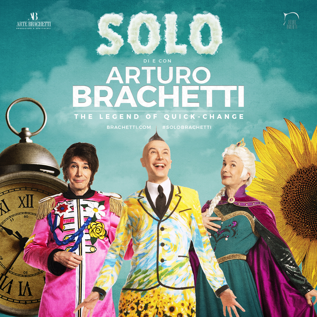 Dai personaggi dei telefilm celebri a Magritte e alle grandi icone della musica pop, passando per le favole e la lotta con i raggi laser in stile Matrix, Brachetti batte il ritmo sul palco: 90 minuti di vero spettacolo pensato per tutti, a partire dalle famiglie. Lo spettacolo è un vero e proprio as-SOLO per uno degli artisti italiani più amati nel mondo, che torna in scena con entusiasmo per regalare al pubblico il suo lavoro più completo: SOLO.