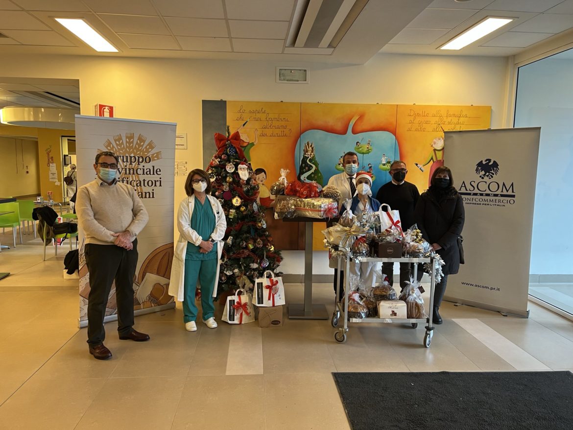 Un dolce profumo ha invaso questa mattina l’atrio dell’Ospedale dei Bambini “Pietro Barilla” portato dal Gruppo provinciale Panificatori di Ascom nell’ormai consueta distribuzione di panettoni artigianali e biscotti per i pazienti ricoverati nei reparti di Oncoematologia pediatrica e di Oncologia medica del Maggiore di Parma.